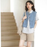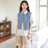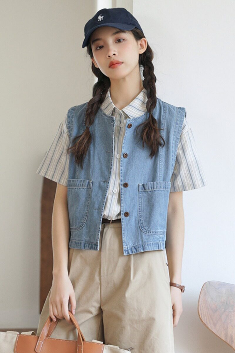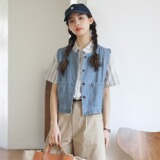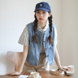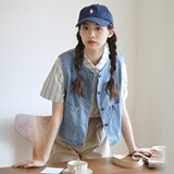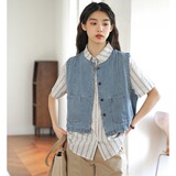Летний японский ретро джинсовый модный дизайнерский жилет, свободный крой, тренд сезона