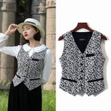 Демисезонный корсет, жилет, майка топ, в корейском стиле, цветочный принт, V-образный вырез