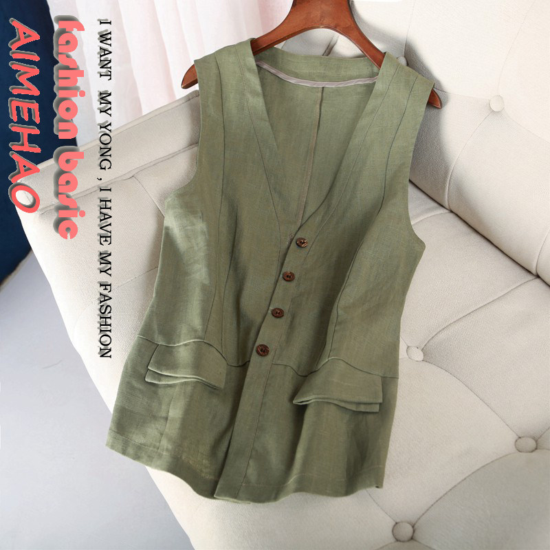 Летний тонкий освежающий многоцветный цветной длинный приталенный жилет для отдыха, из хлопка и льна