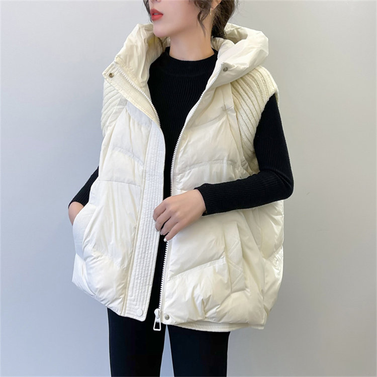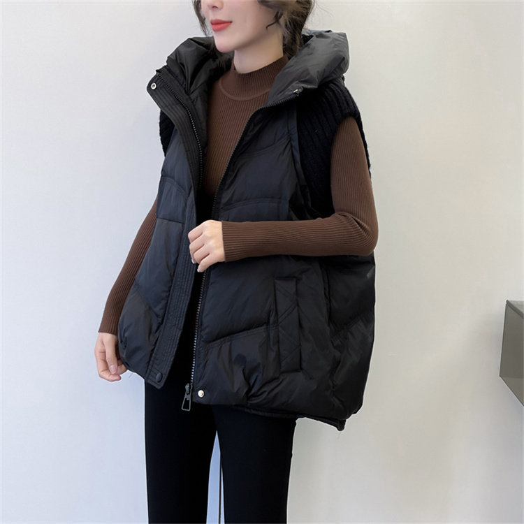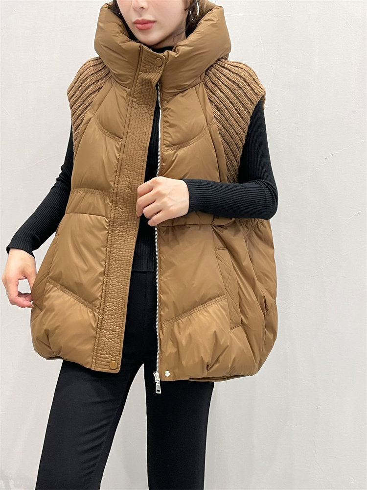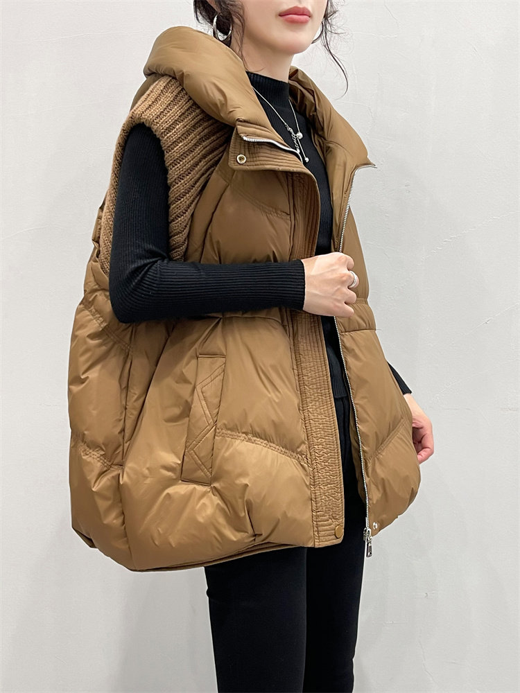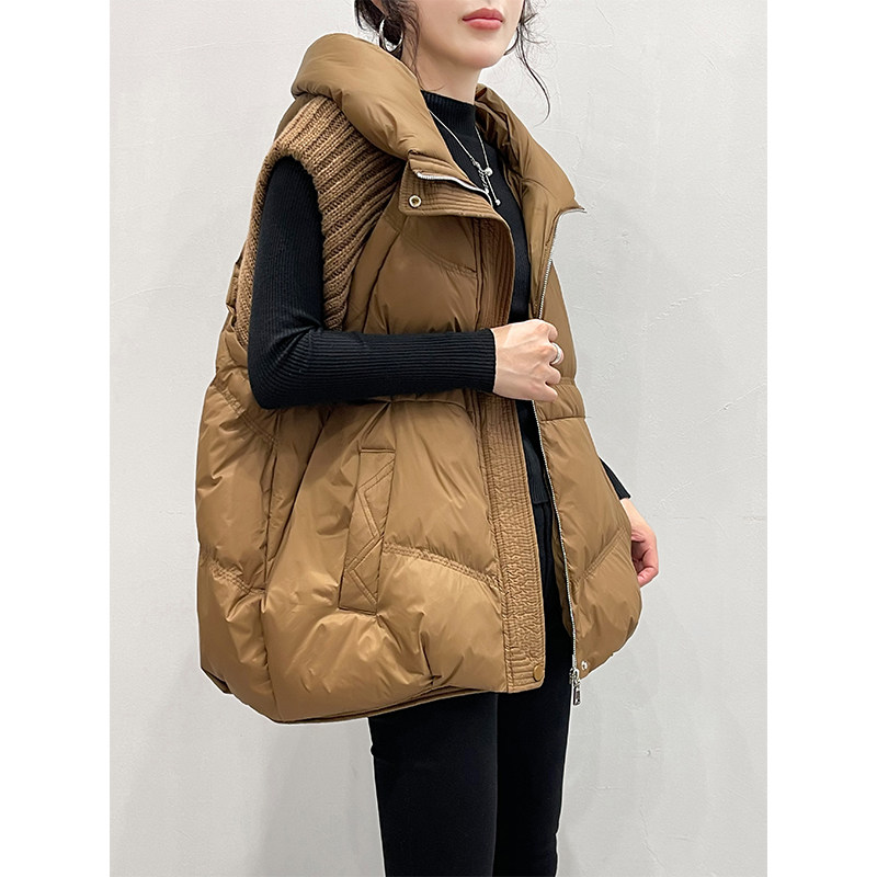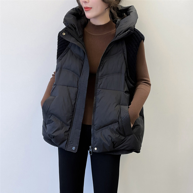 Черный жилет с пухом, бархатная зимняя длинная шапка, европейский стиль, 2024 года, утиный пух, средней длины