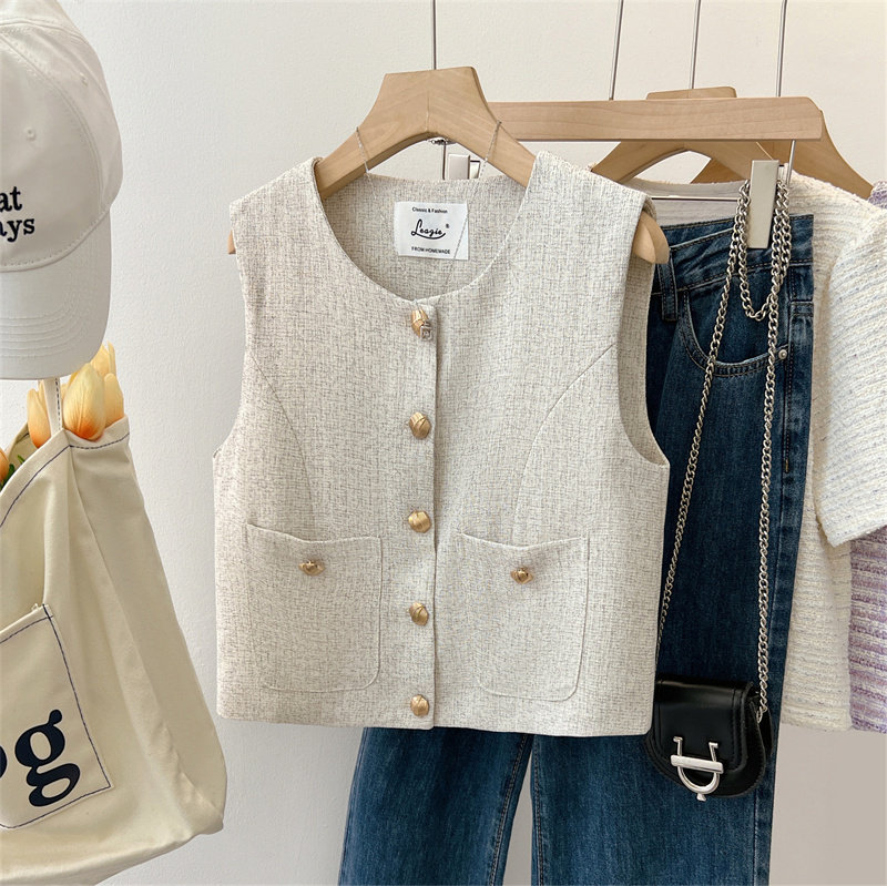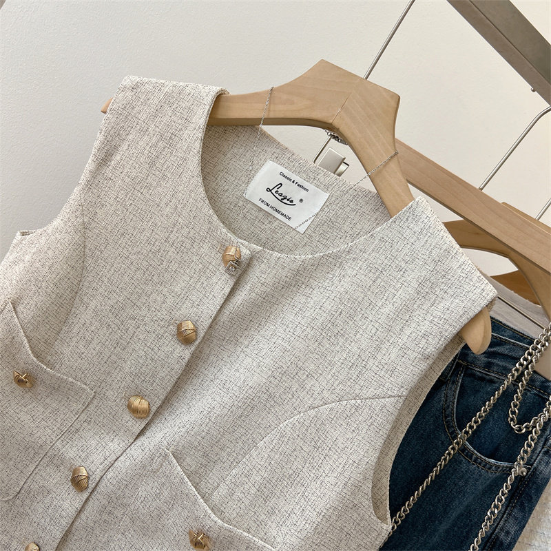 Ретро осенний жилет, майка топ без рукавов, в стиле Шанель, яркий броский стиль, подходит для подростков