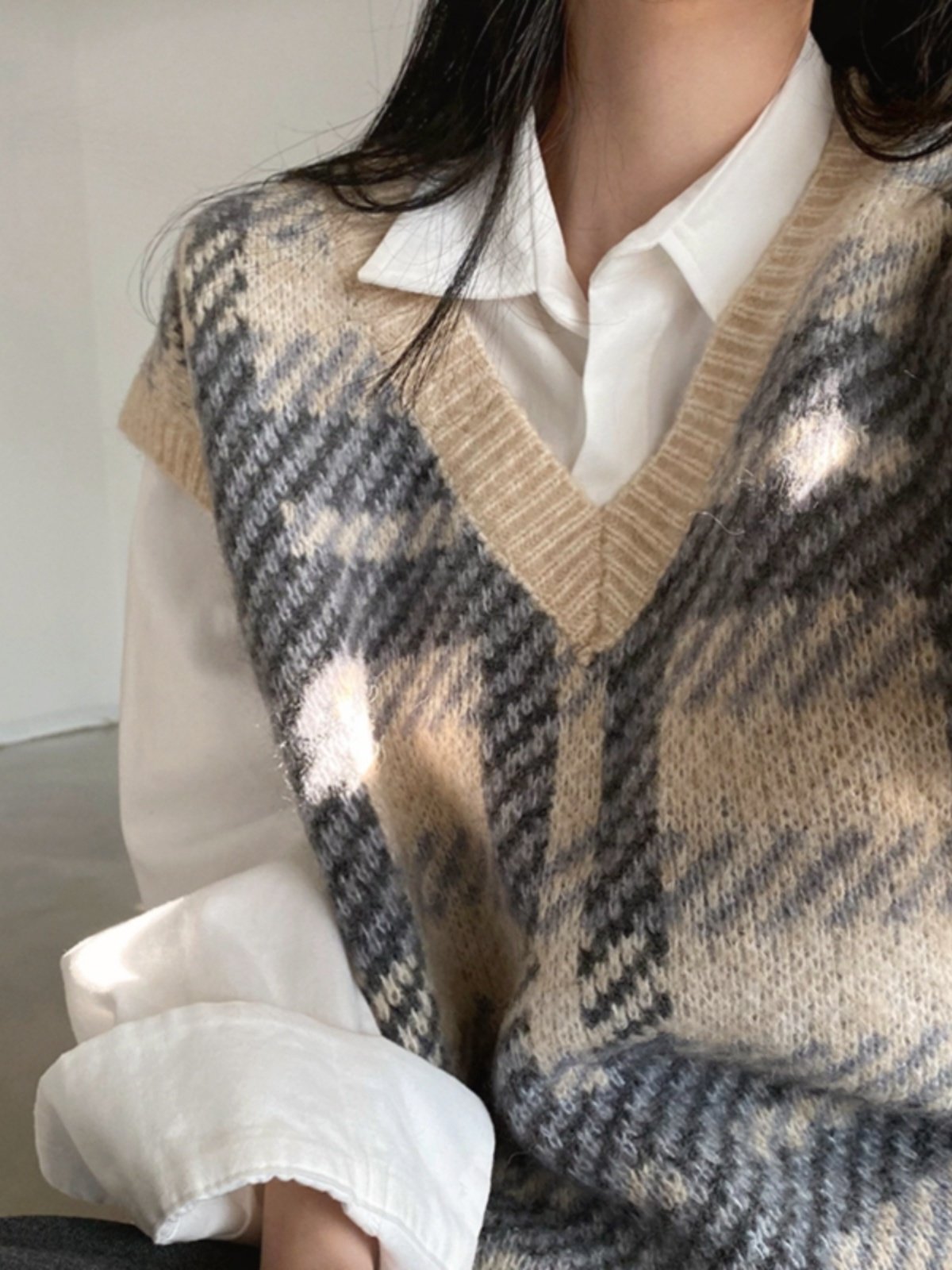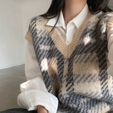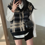 Ретро трикотажный зимний жилет, свитер, V-образный вырез, оверсайз, коллекция 2023