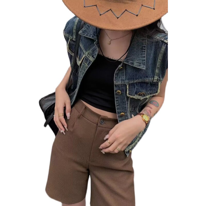 Осенняя джинсовая модная куртка, джинсовый жилет, 2023, в корейском стиле, в западном стиле