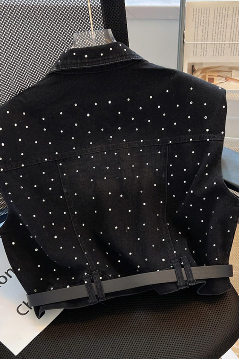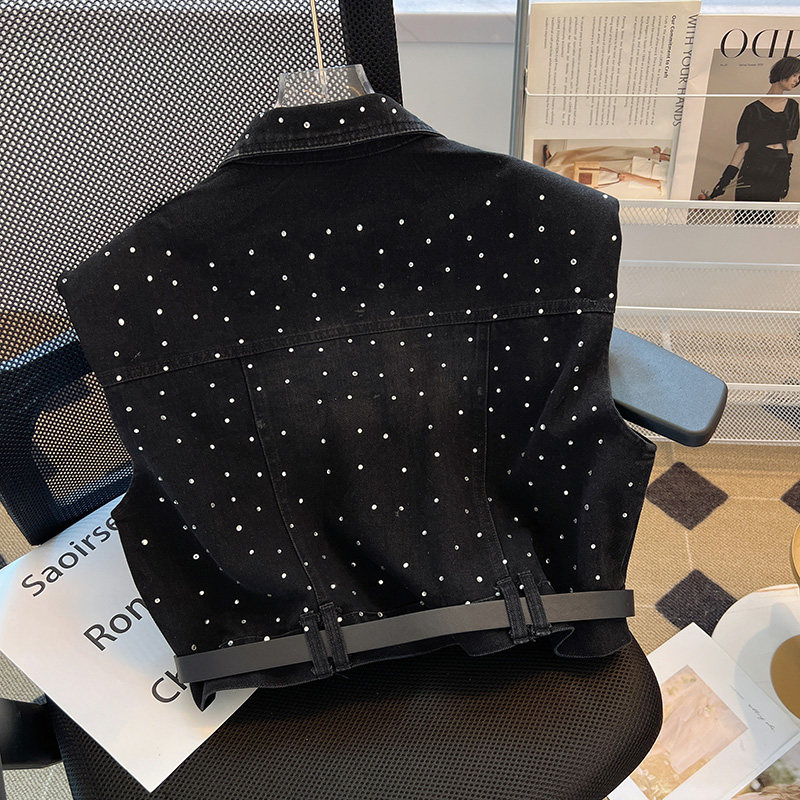 Наплечники, джинсовый осенний жилет, короткий ремень без рукавов, куртка, свободный крой
