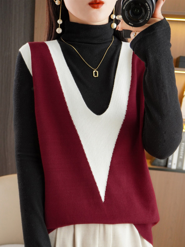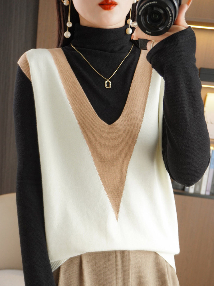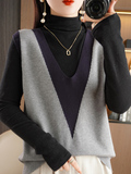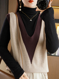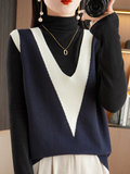 Трикотажный свитер, ретро жилет, V-образный вырез, свободный крой