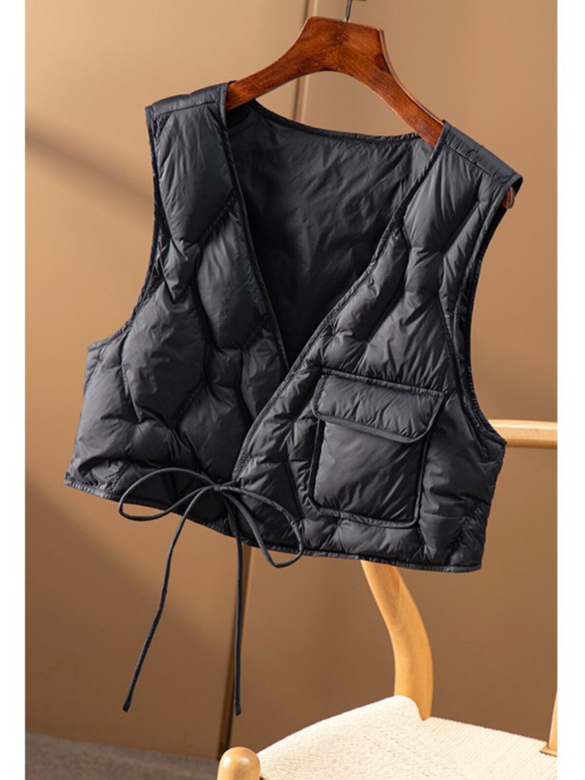 Легкий и тонкий жилет с пухом, майка топ, куртка, V-образный вырез