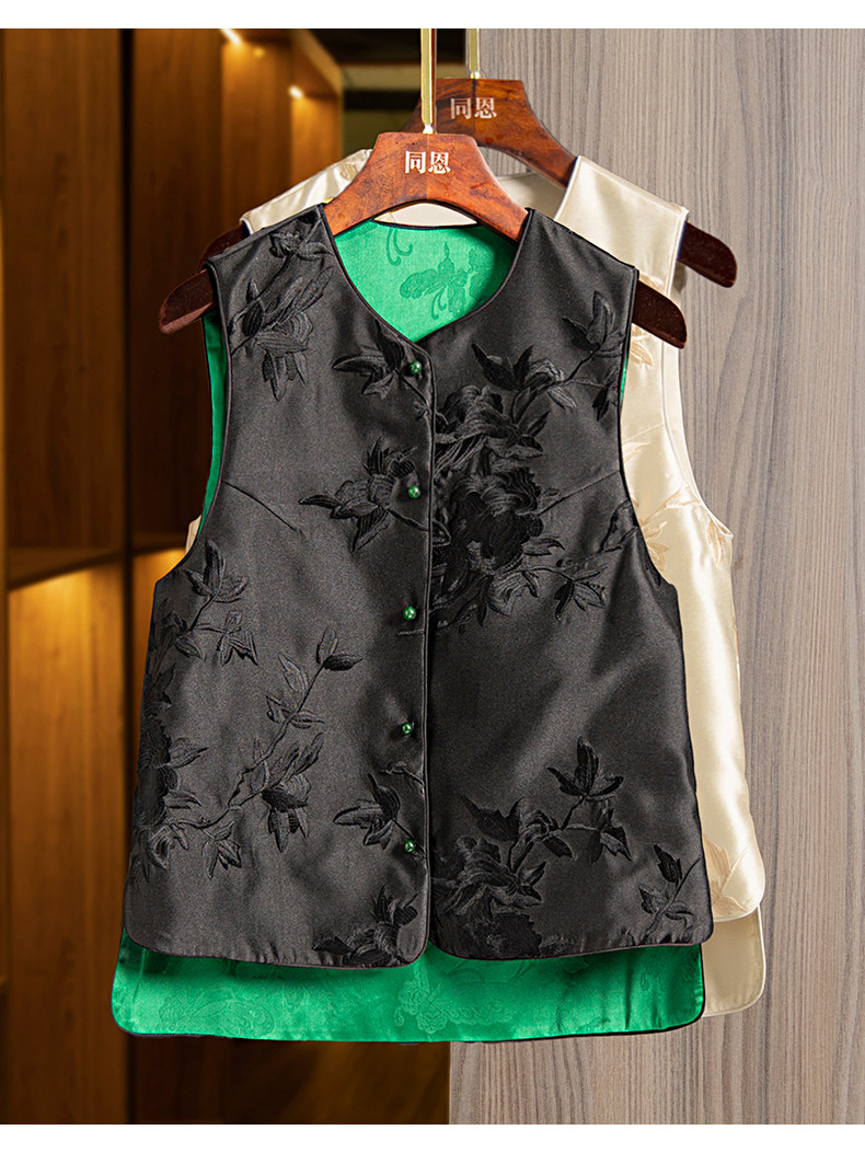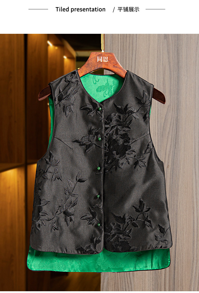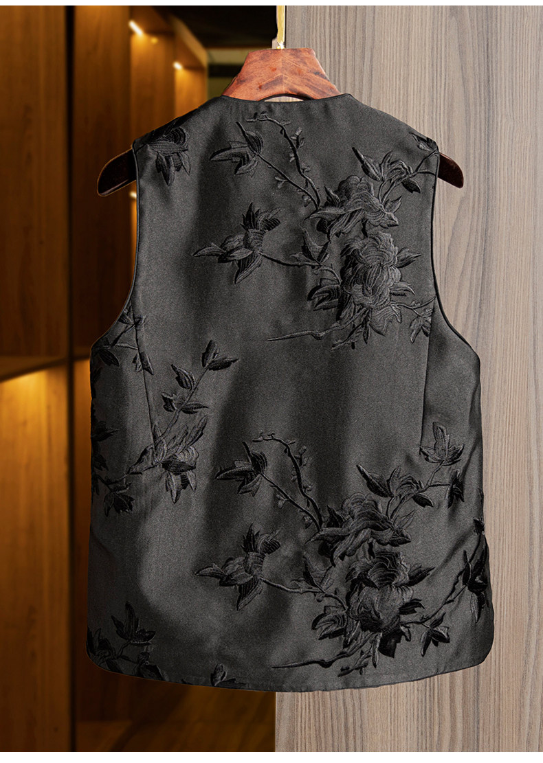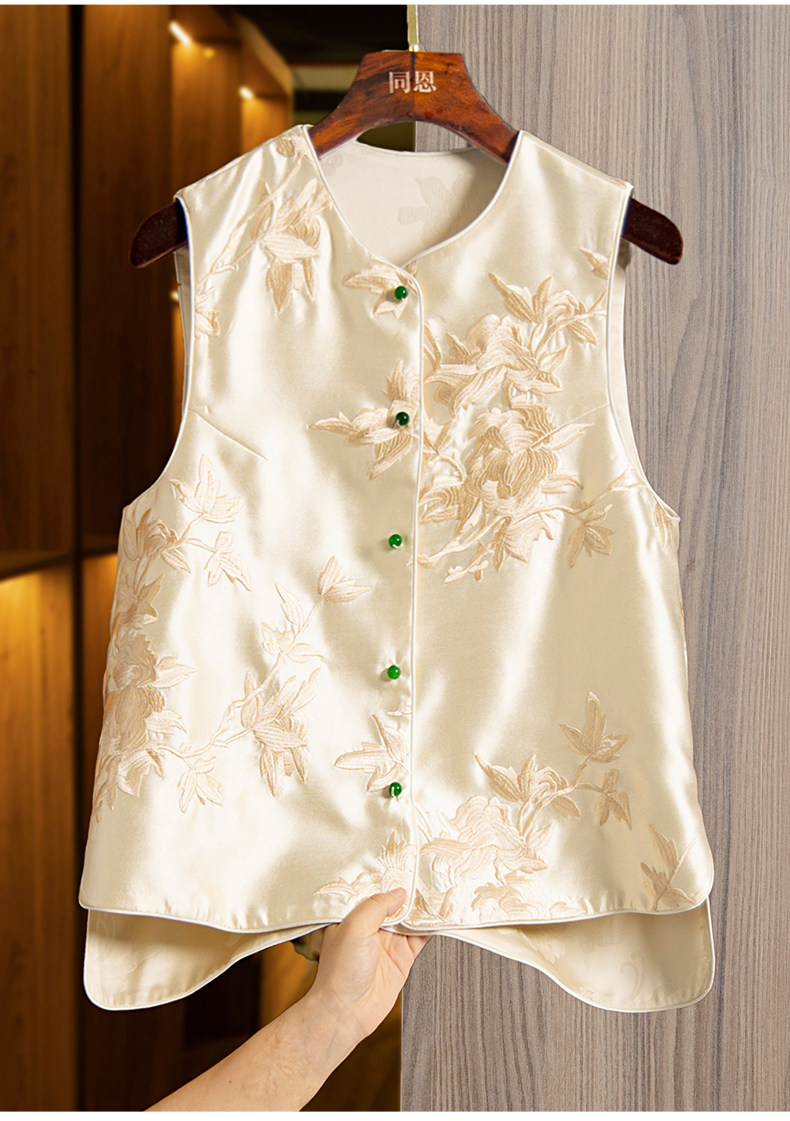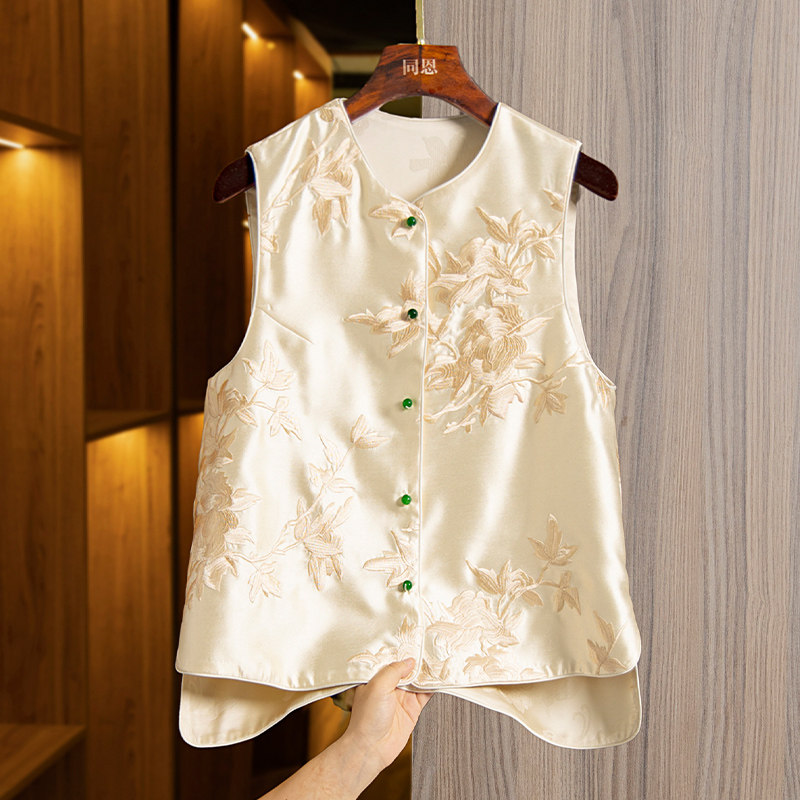 Жилет, весенняя майка топ с круглым воротником без рукавов, ретро куртка, с вышивкой, китайский стиль