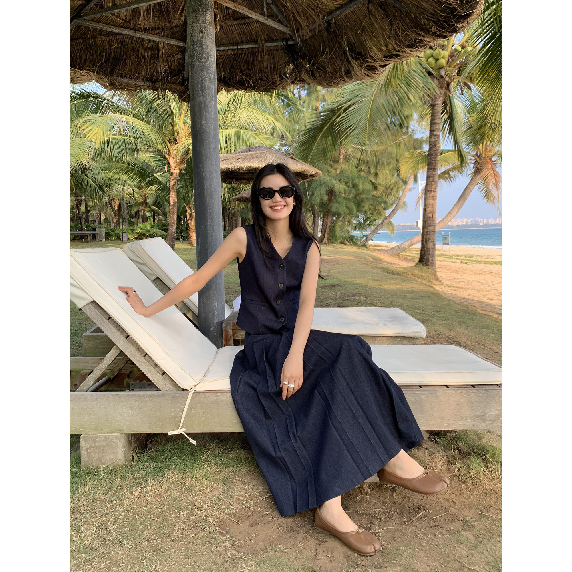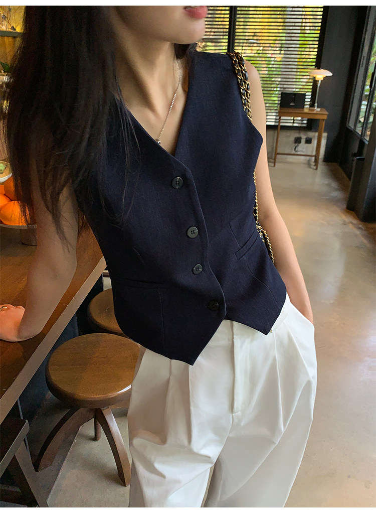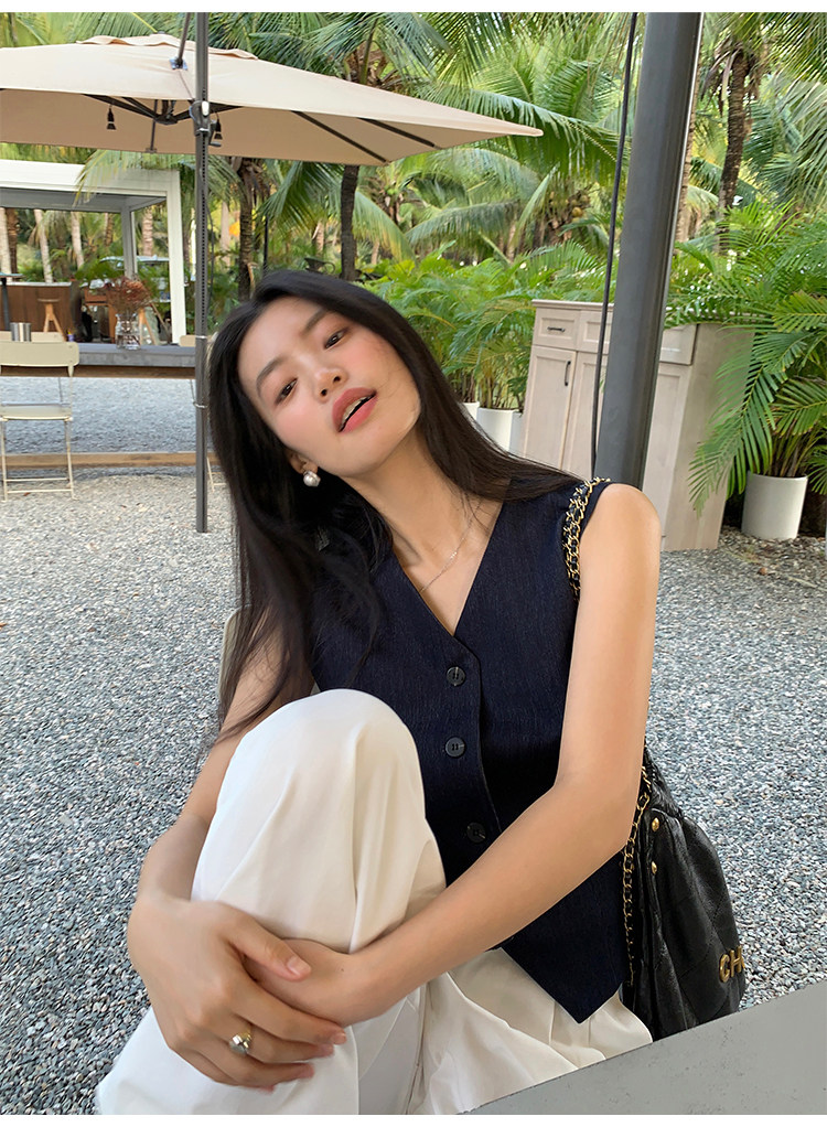 pusumede Короткий костюм, жилет, летний бюстгальтер-топ, летняя майка топ, французский стиль, V-образный вырез