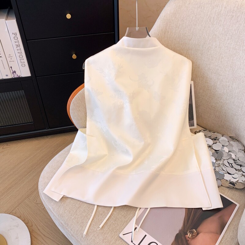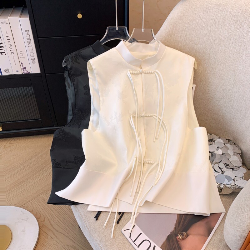 Черный короткий весенний летний жилет, футболка без рукавов, китайский стиль