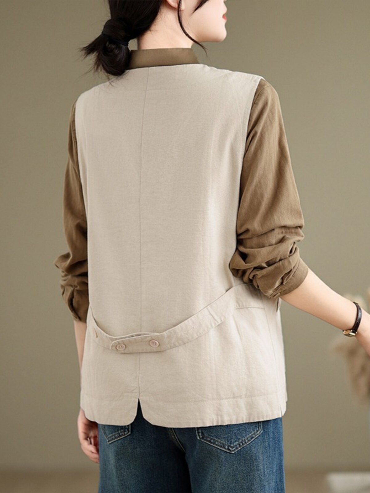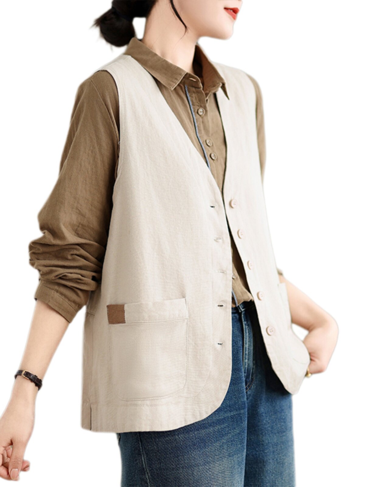 Ретро летний жилет, тонкая майка топ, из хлопка и льна, оверсайз, V-образный вырез
