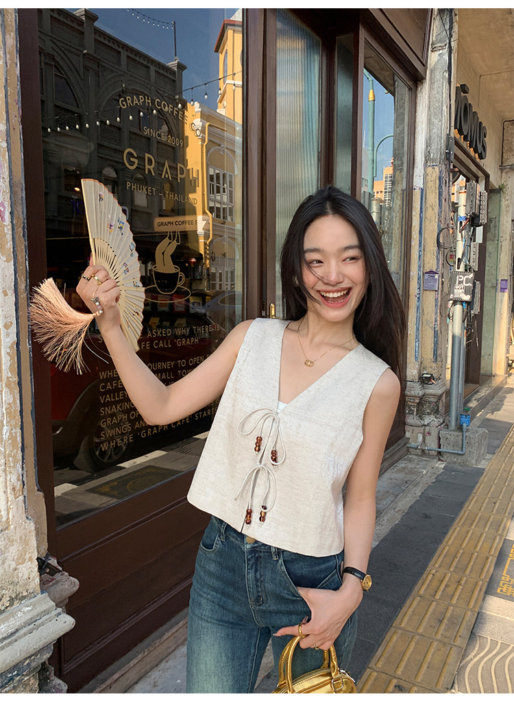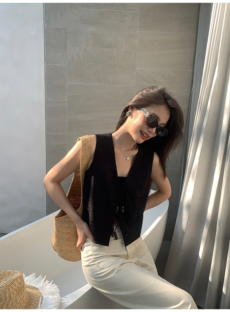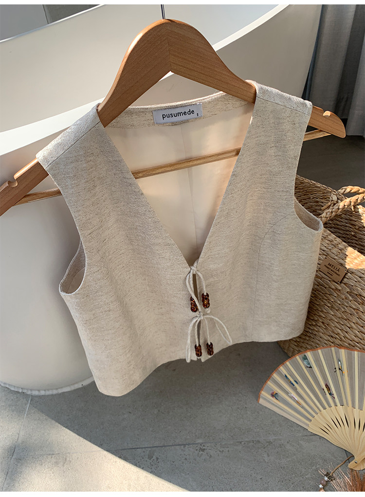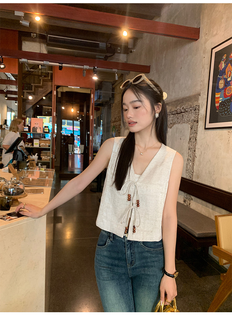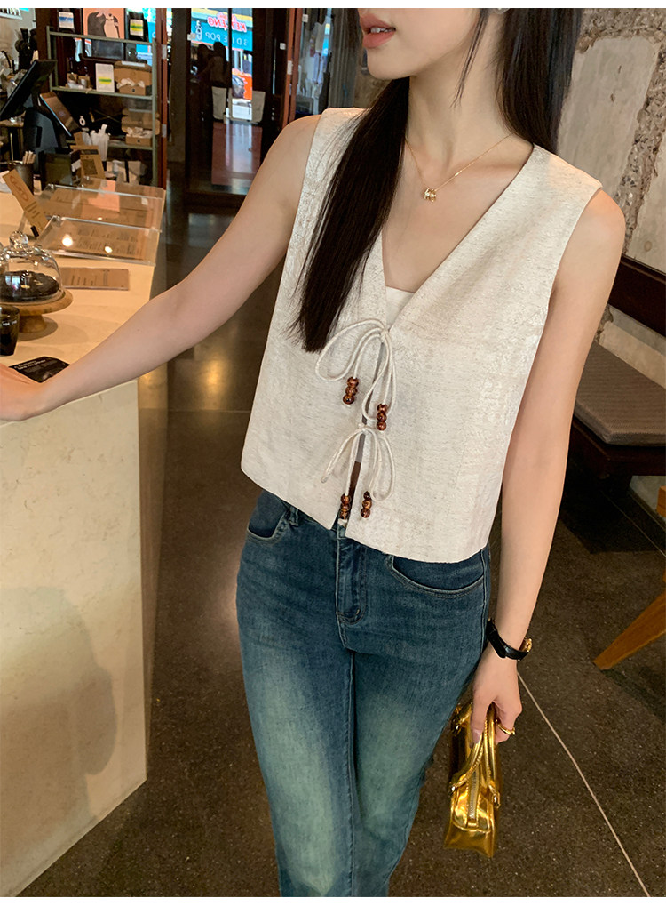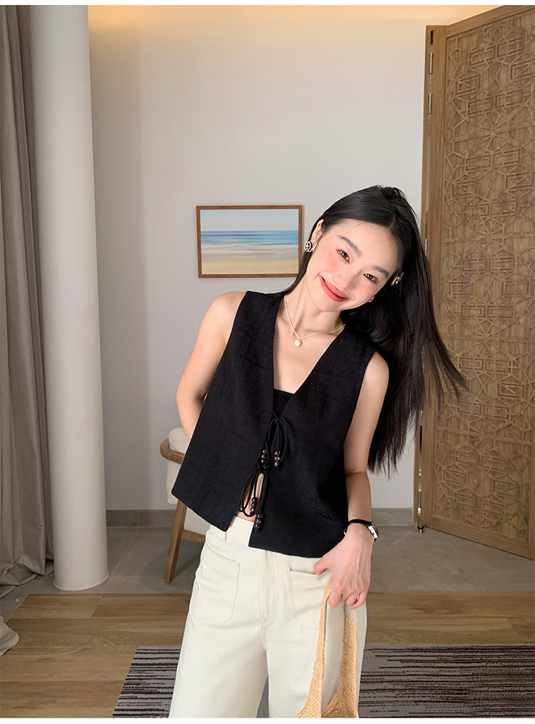 pusumede Ретро жилет, дизайнерская майка топ, V-образный вырез, тренд сезона, китайский стиль