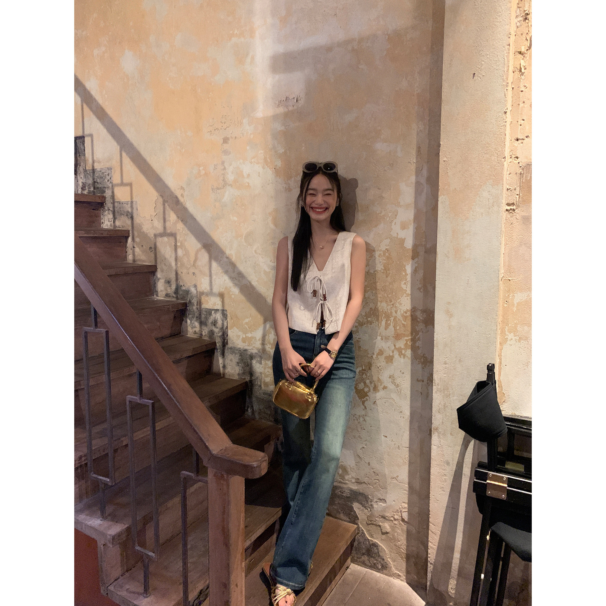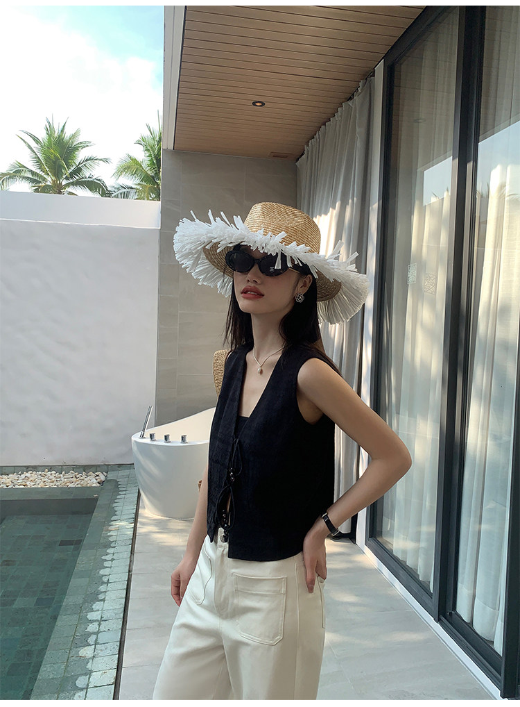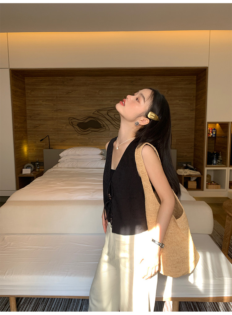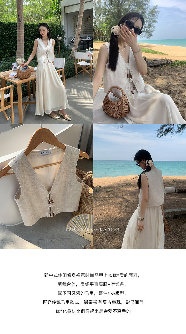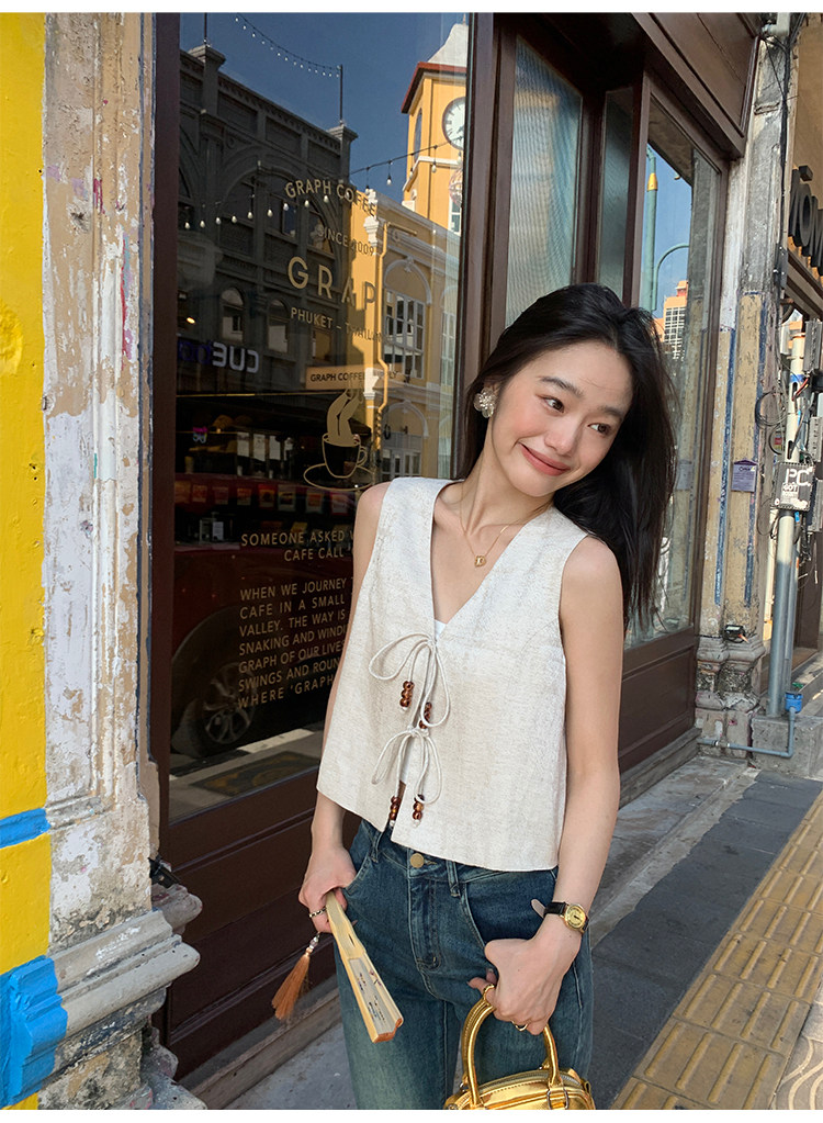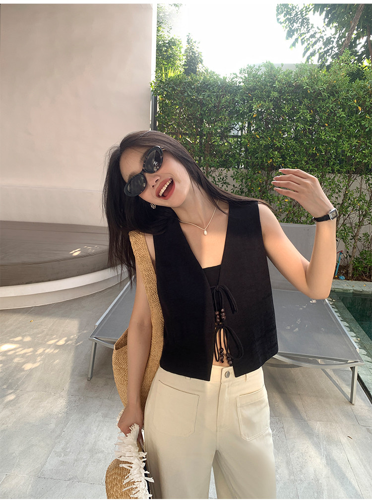 pusumede Ретро жилет, дизайнерская майка топ, V-образный вырез, тренд сезона, китайский стиль