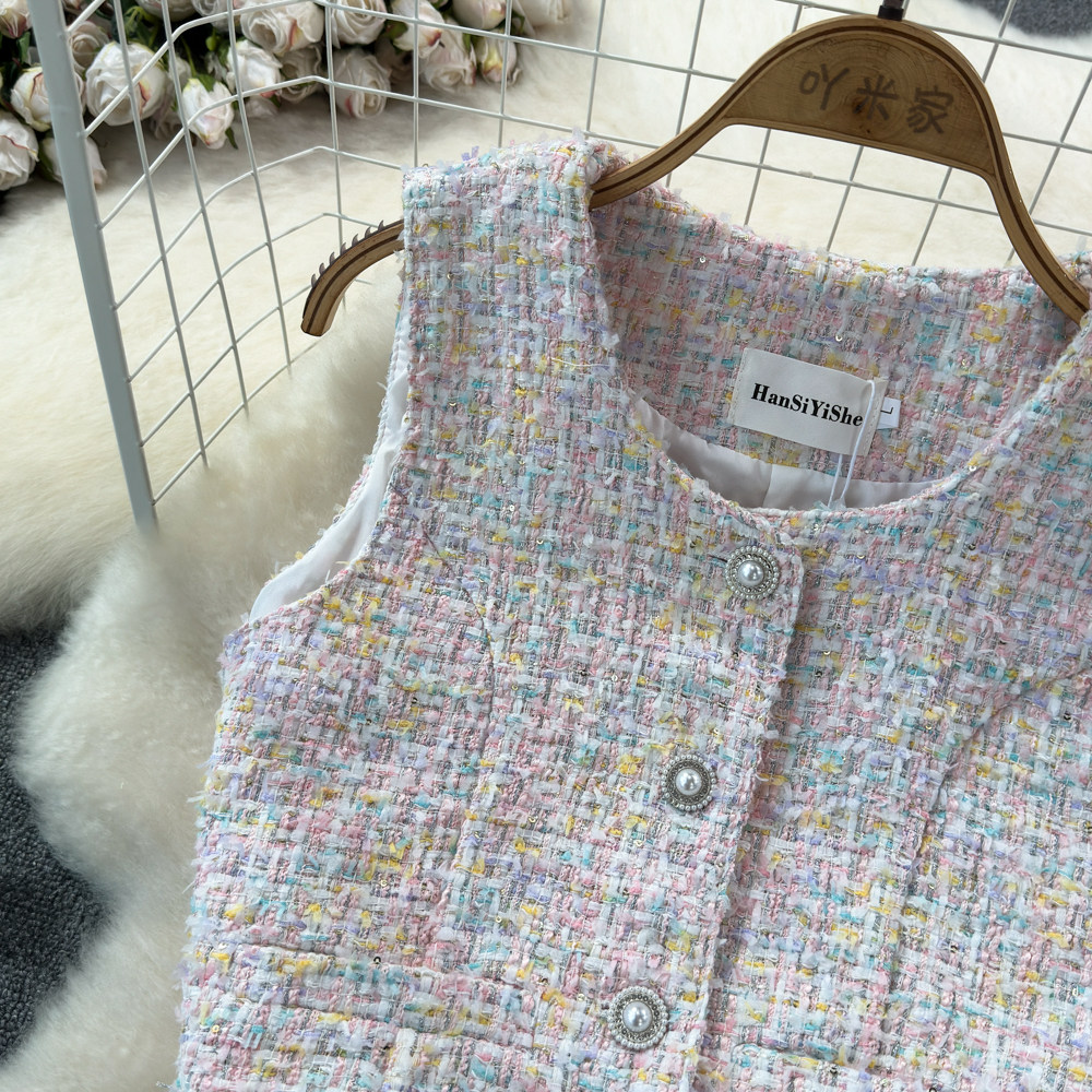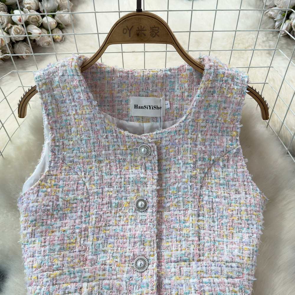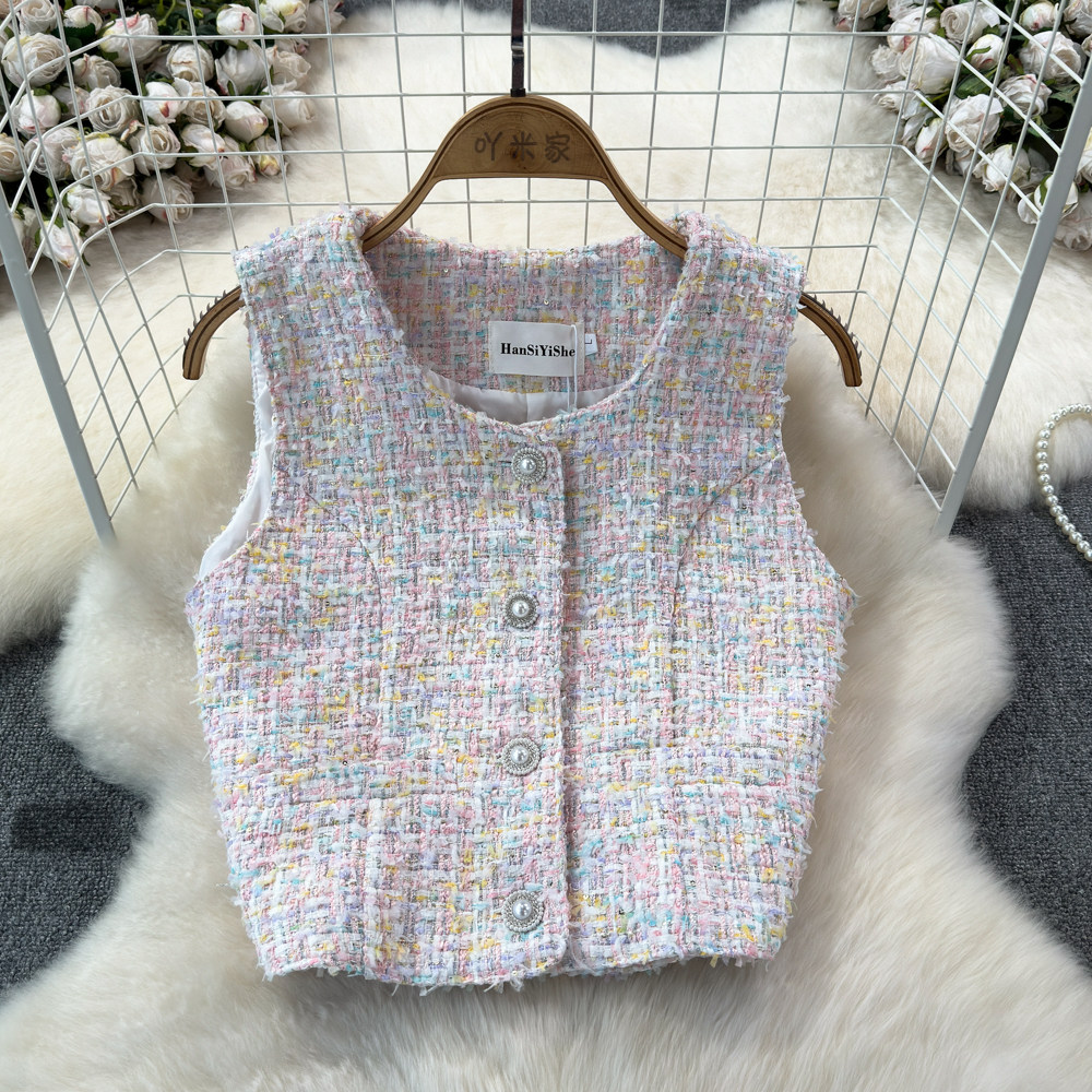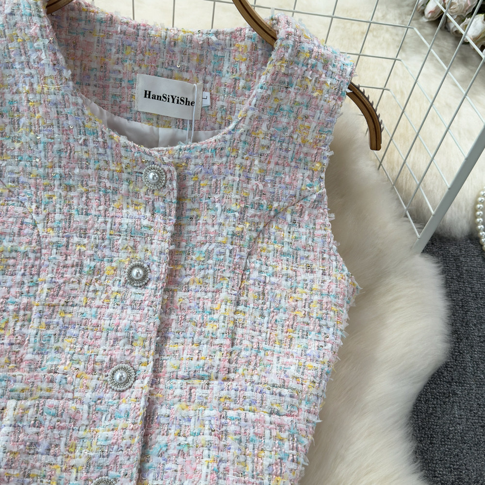 Весенний модный жилет, куртка, французский стиль, в стиле Шанель, яркий броский стиль, изысканный стиль