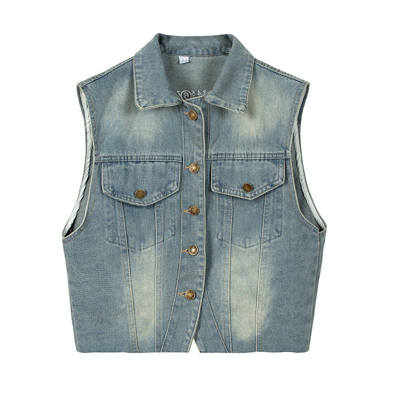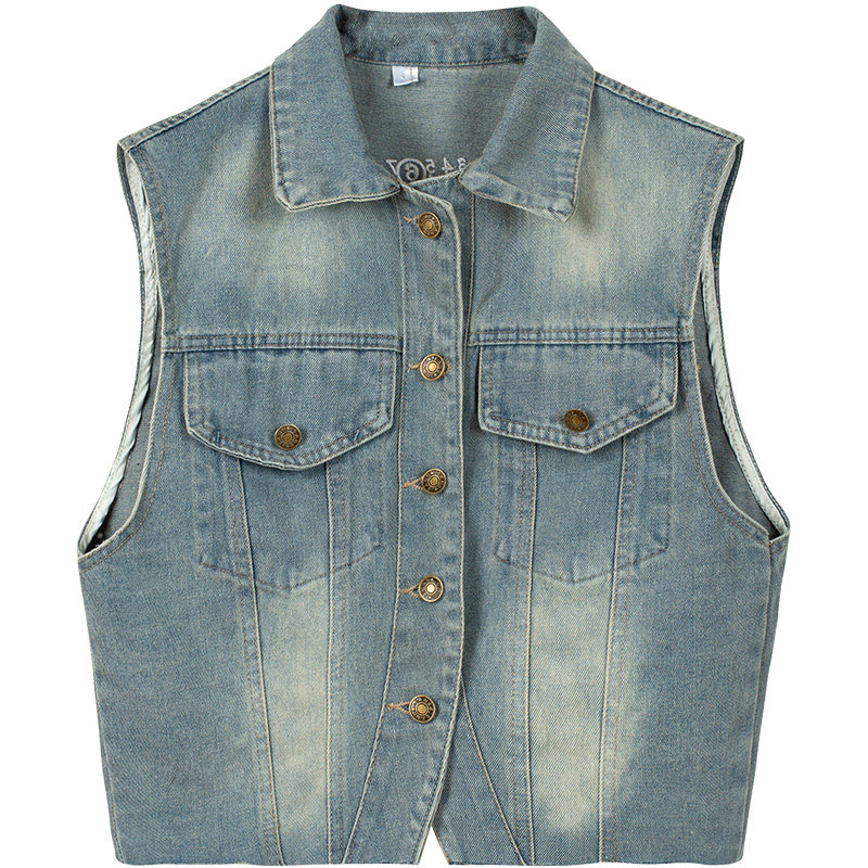 Ретро джинсовый жилет, летняя майка топ, короткий кардиган, футболка без рукавов, в американском стиле