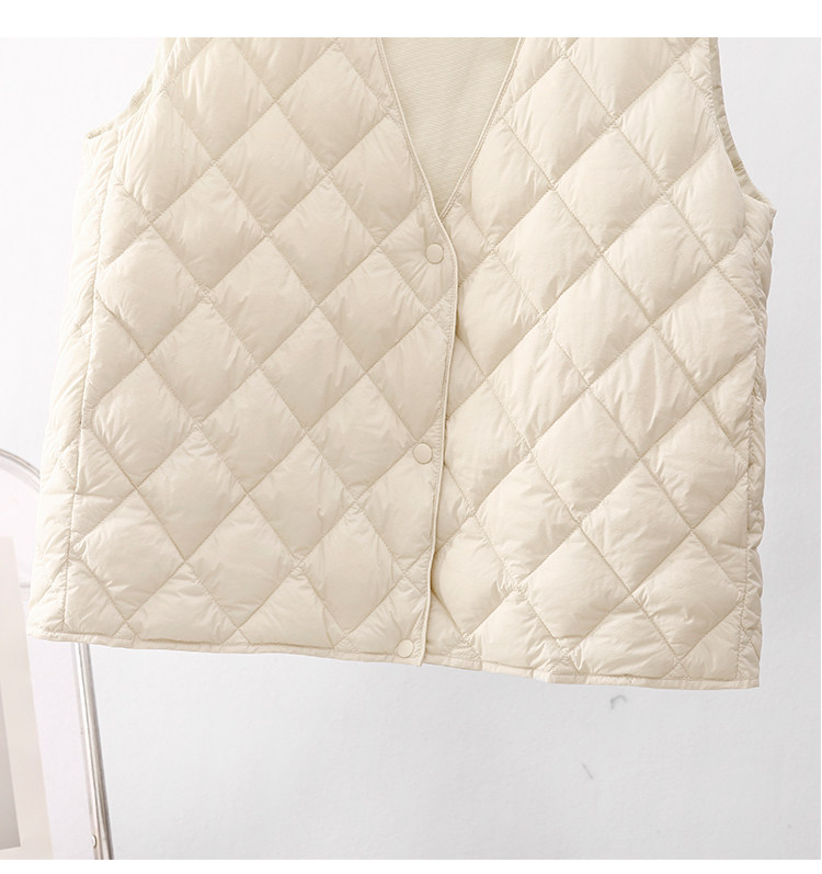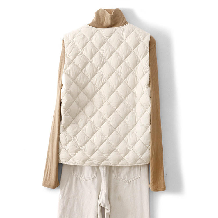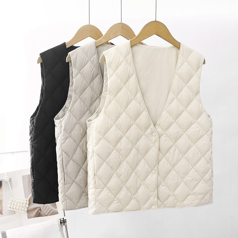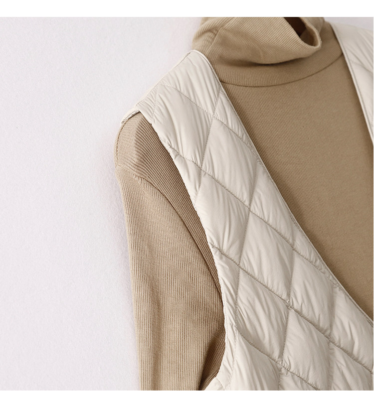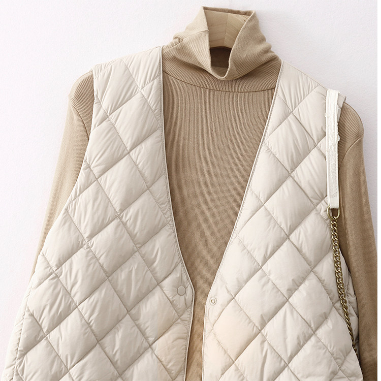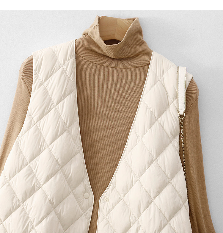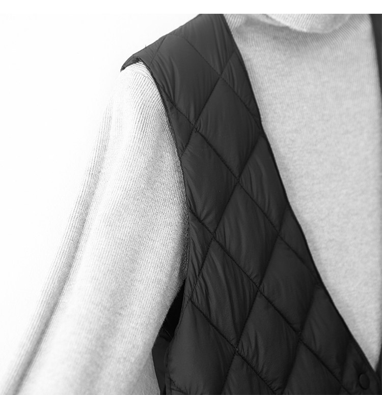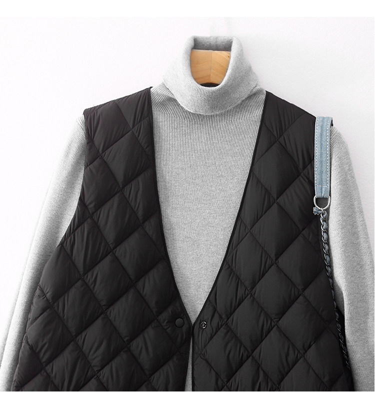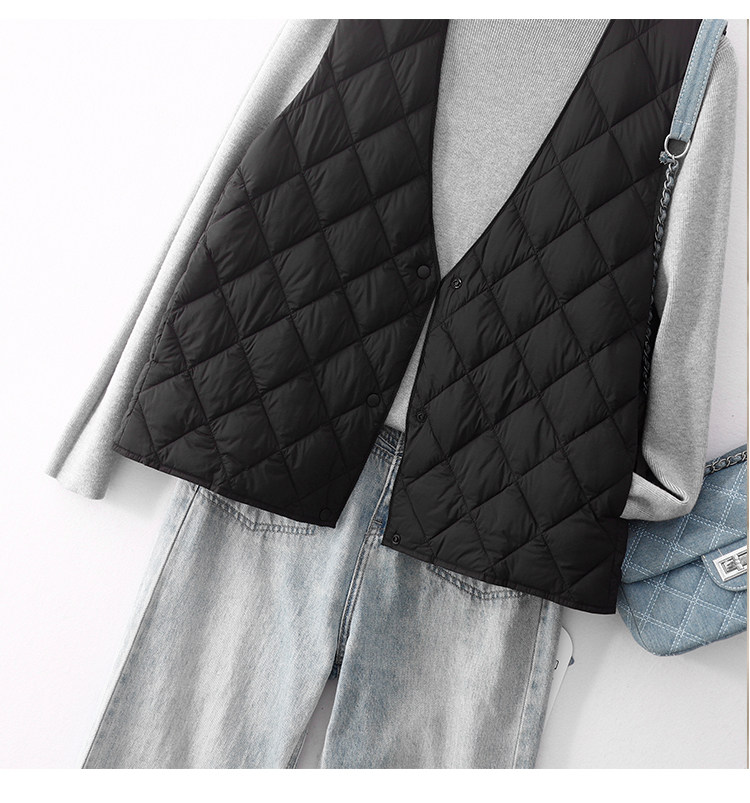 Легкий и тонкий демисезонный жилет с ромбовидным узором с пухом без рукавов, V-образный вырез