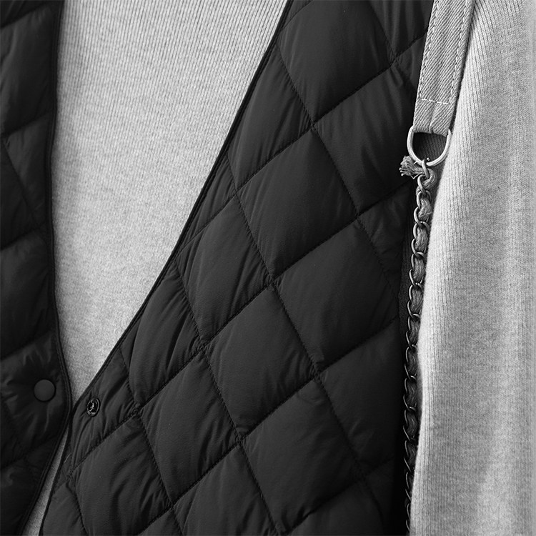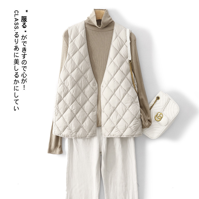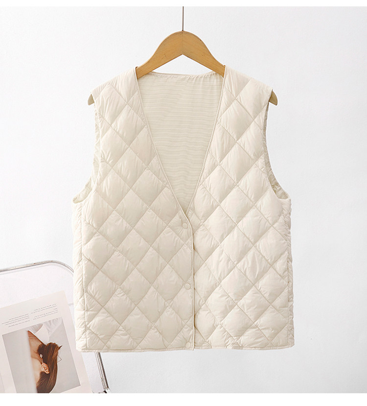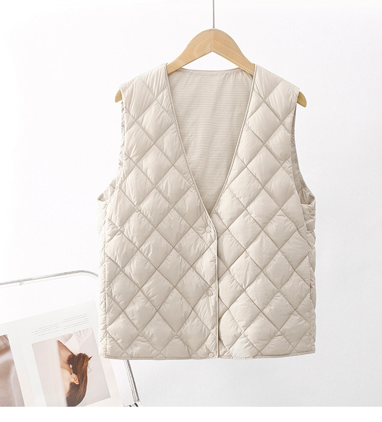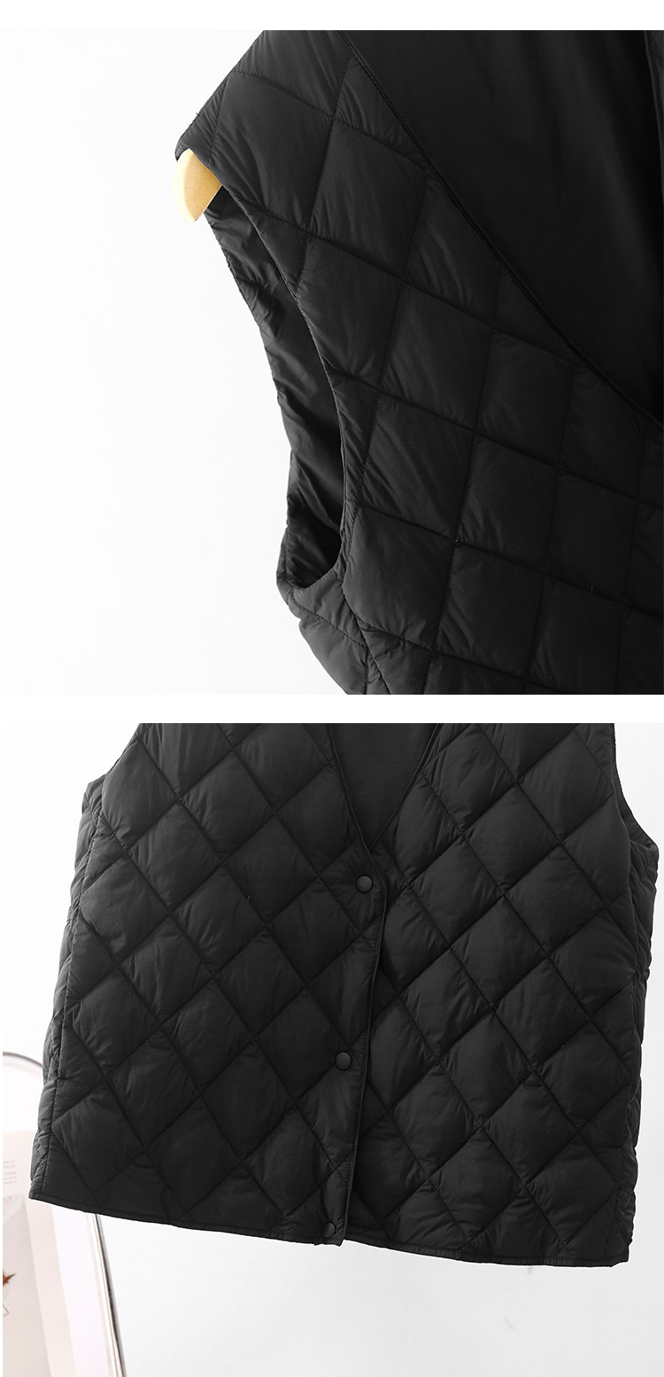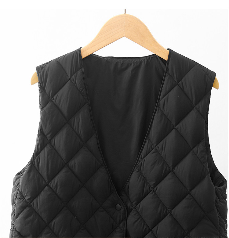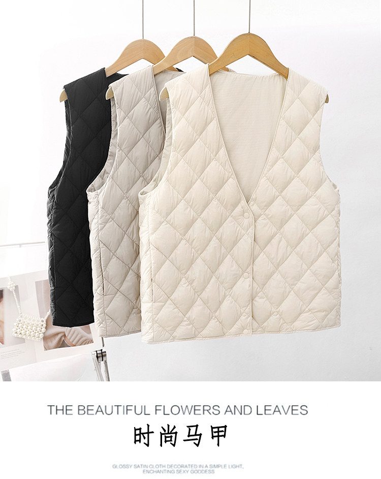 Легкий и тонкий демисезонный жилет с ромбовидным узором с пухом без рукавов, V-образный вырез