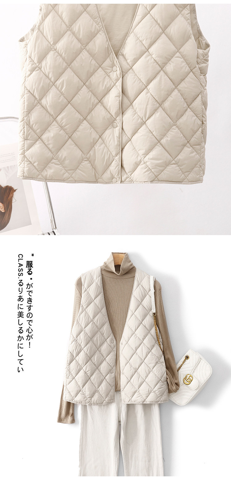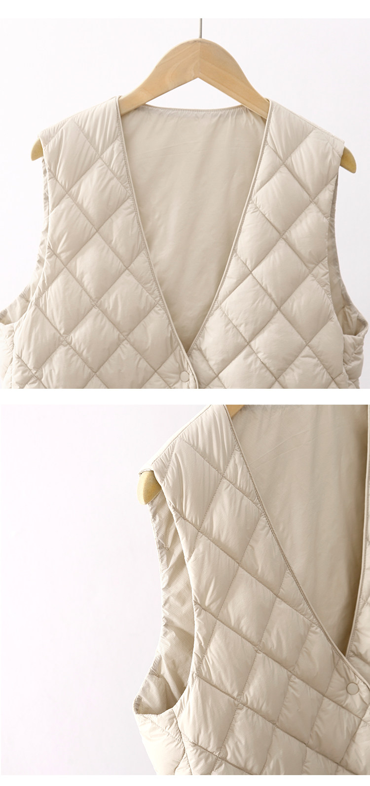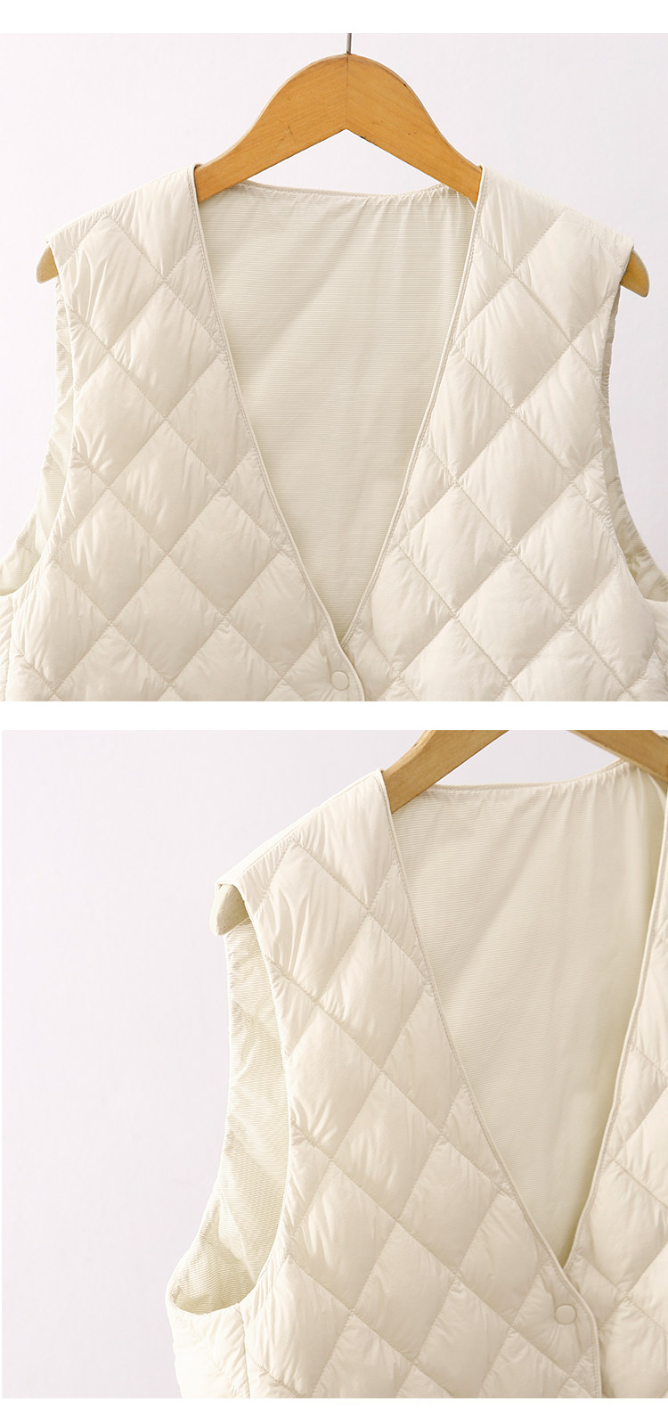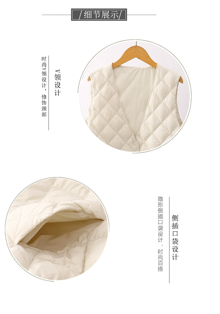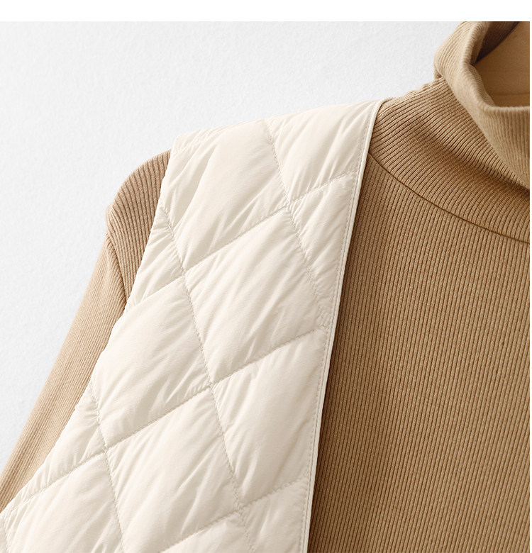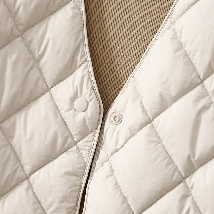 Легкий и тонкий демисезонный жилет с ромбовидным узором с пухом без рукавов, V-образный вырез