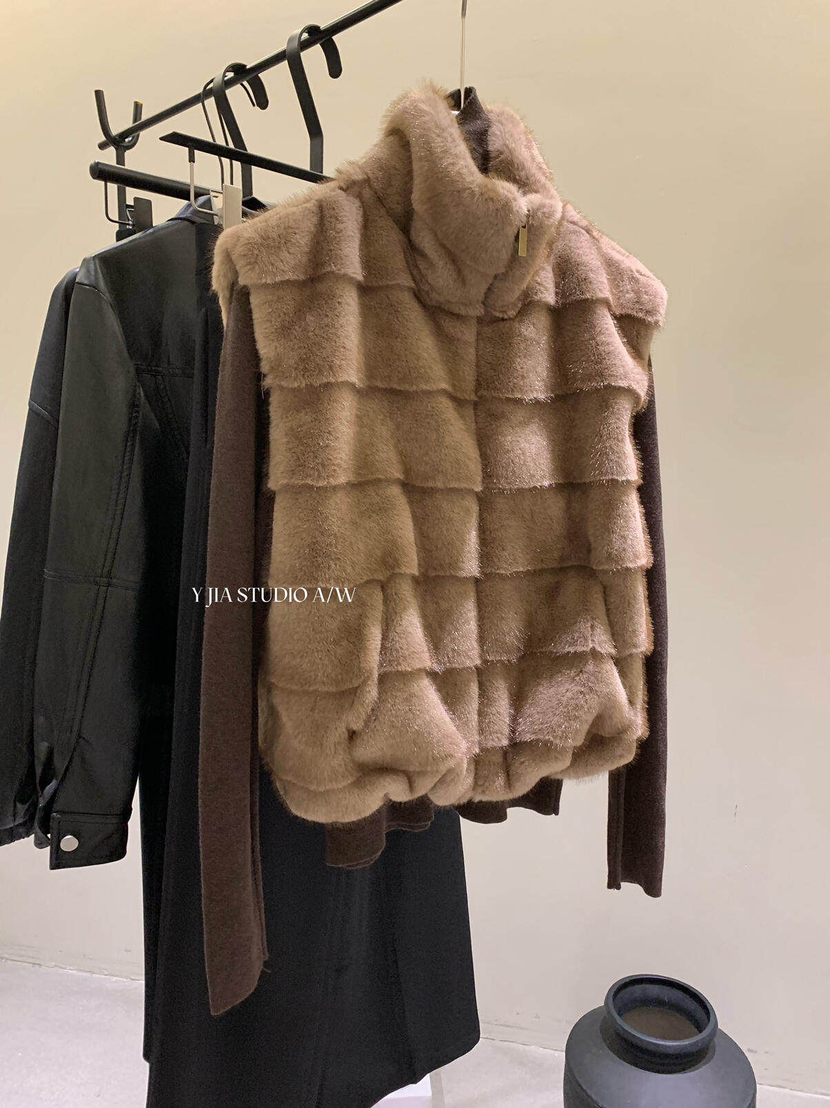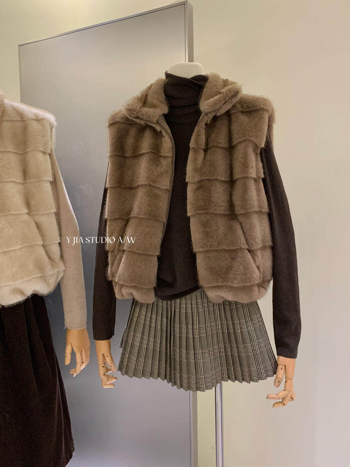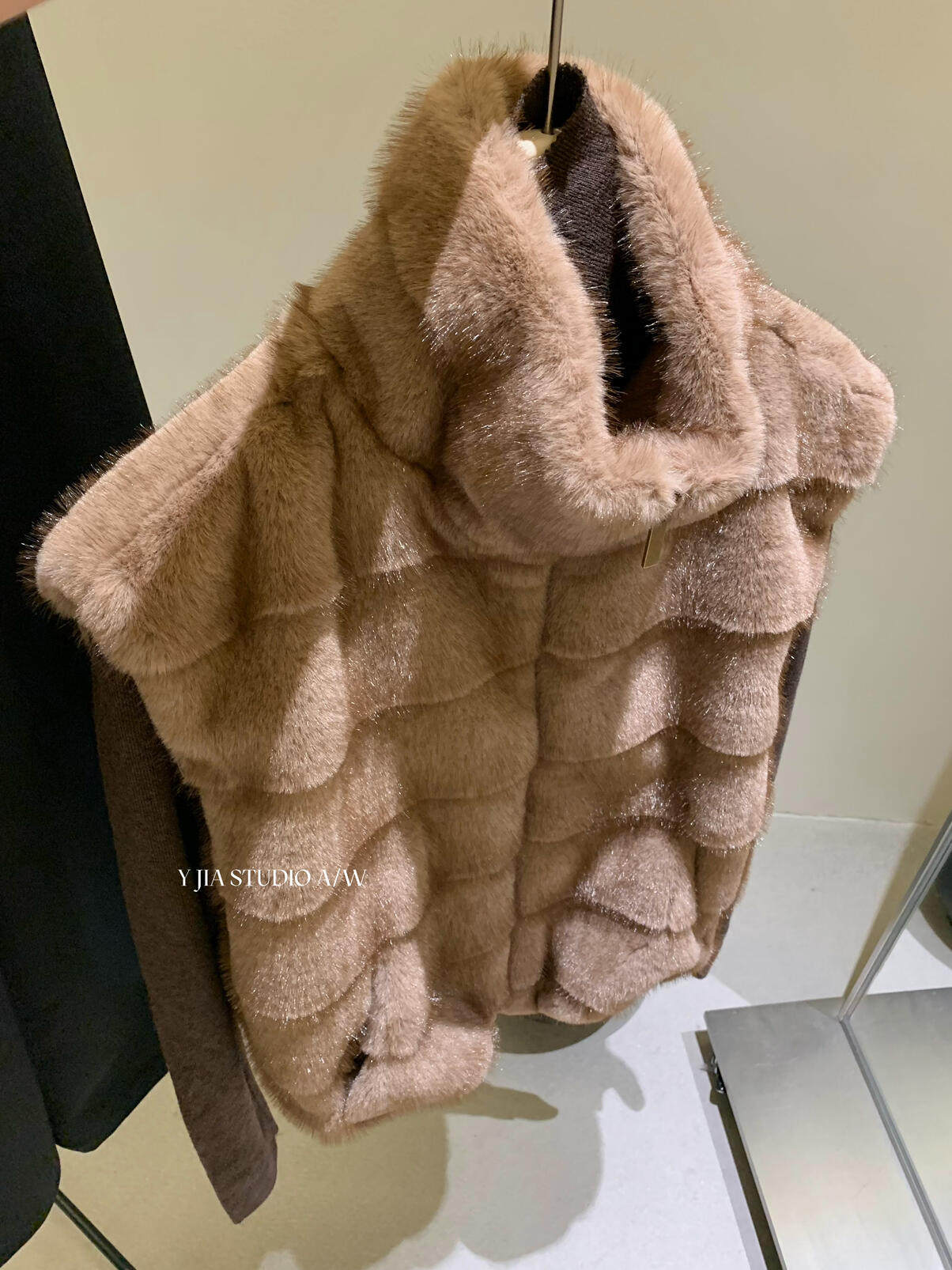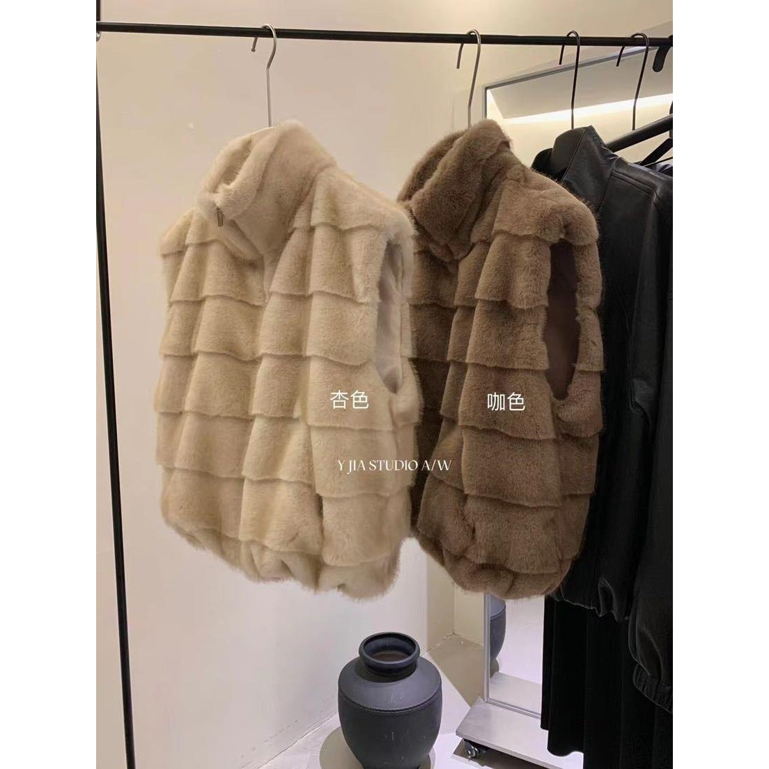 YJIA 2025 осенне-зимний жилет из многослойной шерсти с воротником-стойкой из искусственного меха норки, жилет 1318-5