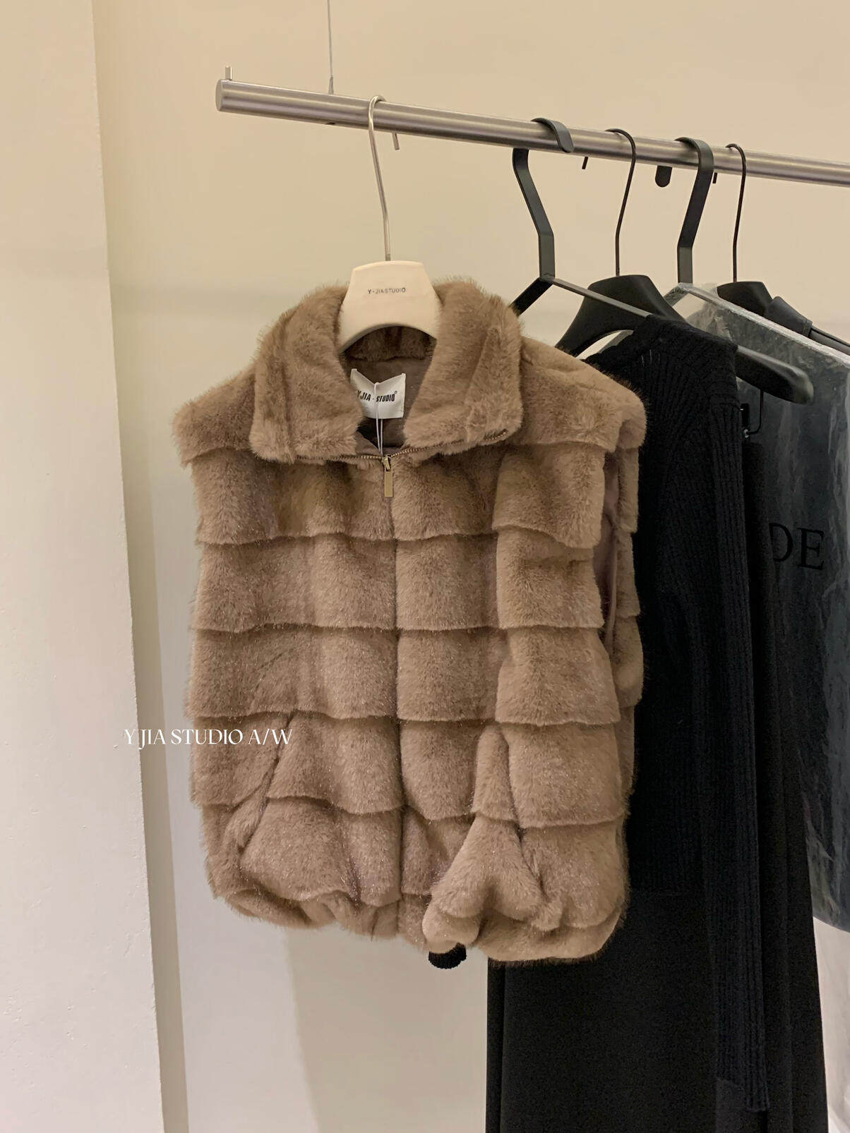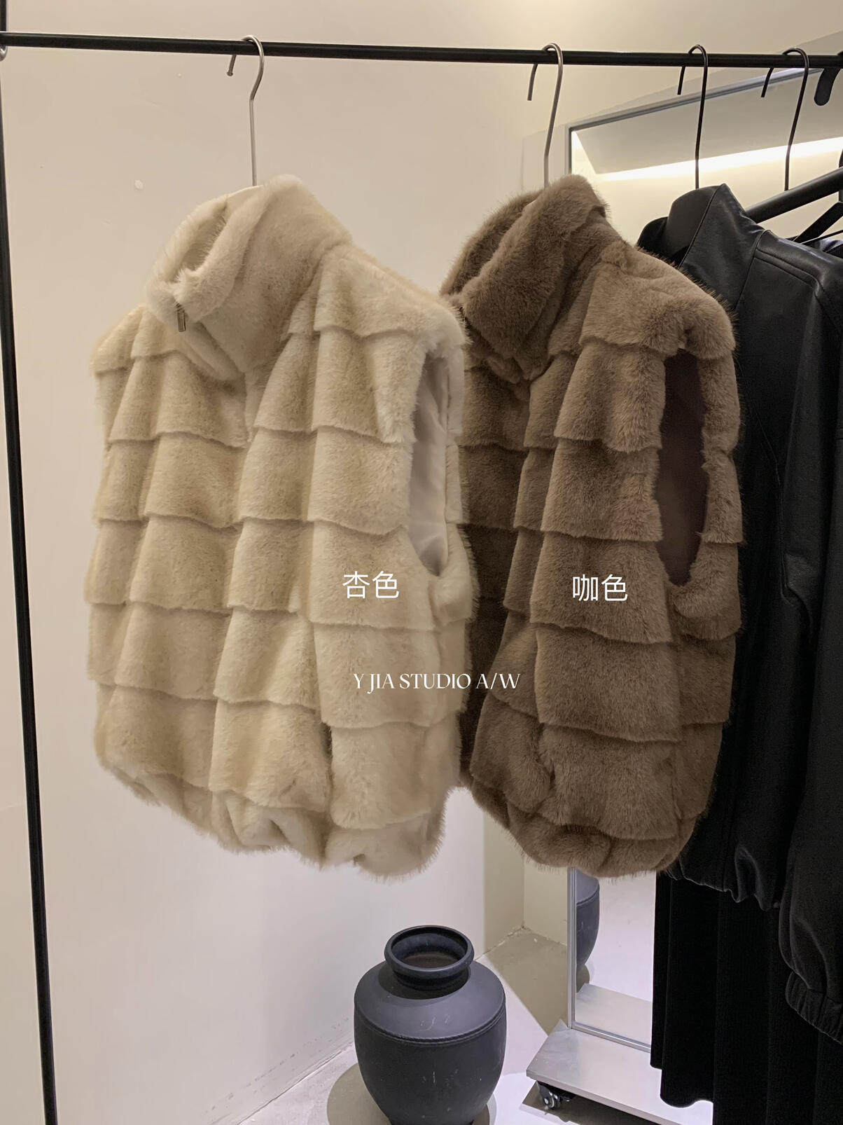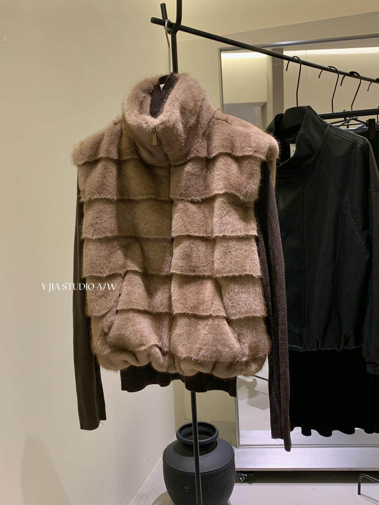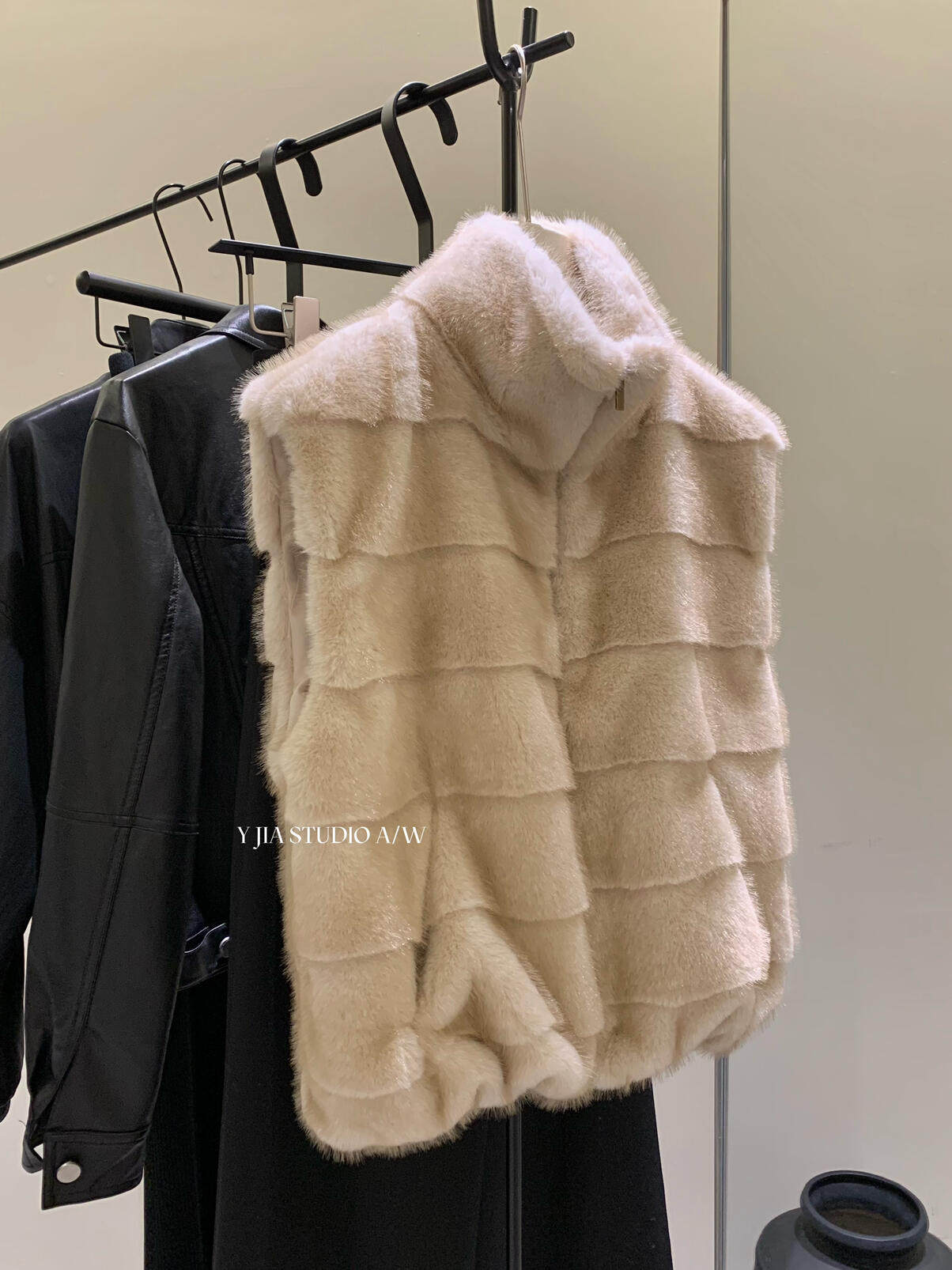 YJIA 2025 осенне-зимний жилет из многослойной шерсти с воротником-стойкой из искусственного меха норки, жилет 1318-5