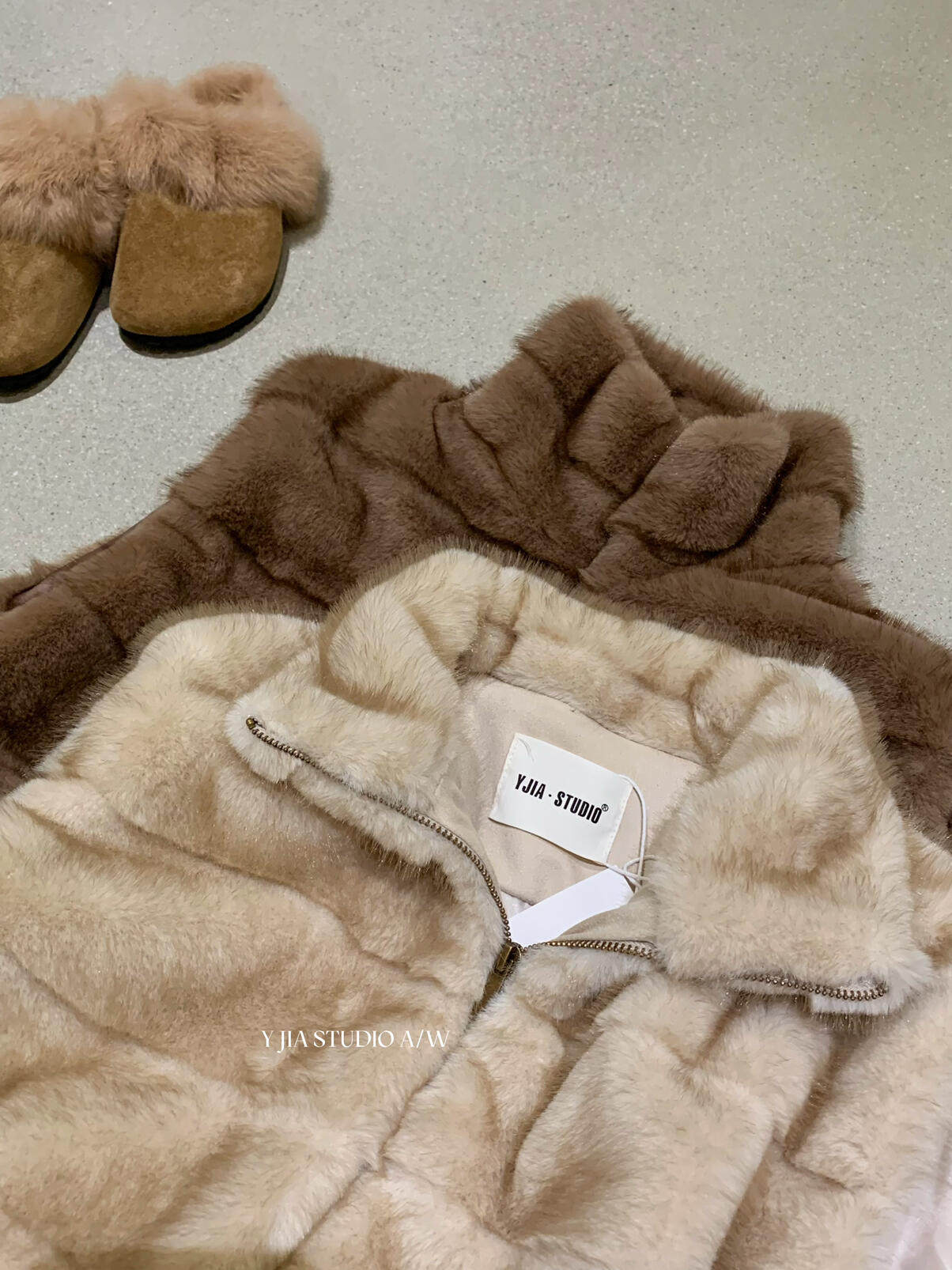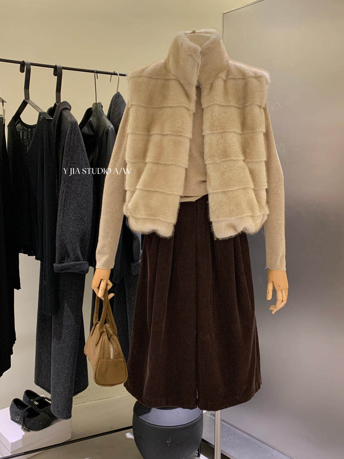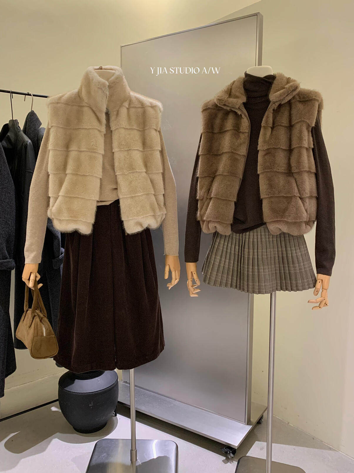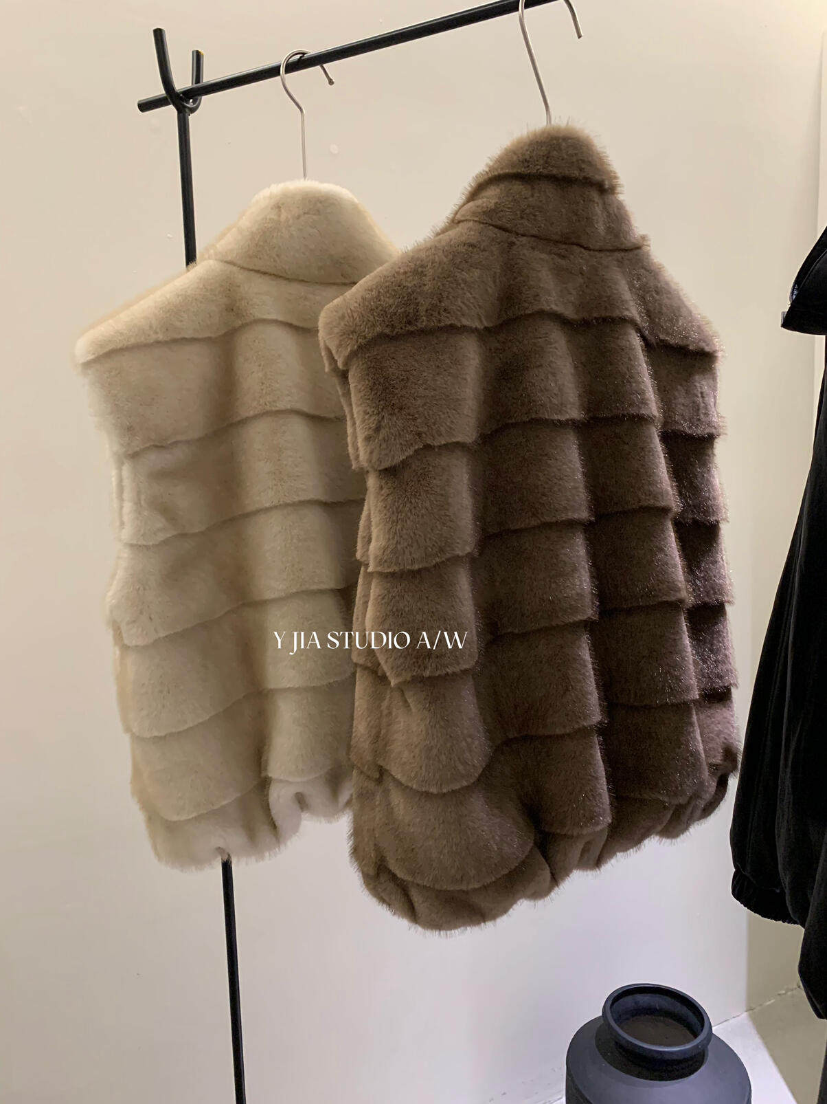 YJIA 2025 осенне-зимний жилет из многослойной шерсти с воротником-стойкой из искусственного меха норки, жилет 1318-5