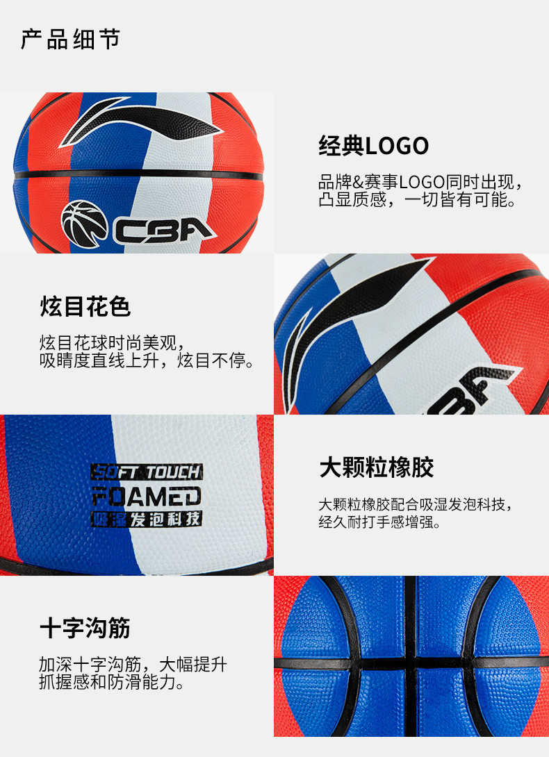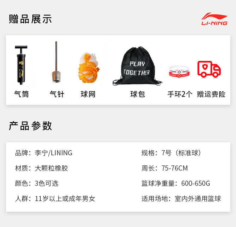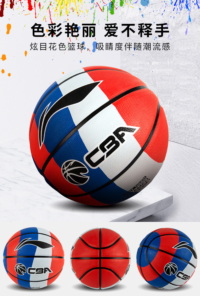 Li Ning, баскетбольный износостойкий резиновый мягкий мяч для тренировок, официальный продукт