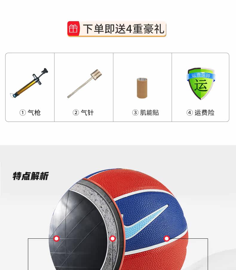 Nike/Nike Баскетбольный детский мини-игровой мяч для детского сада № 3, универсальный спортивный мяч для дома и улицы DO8261