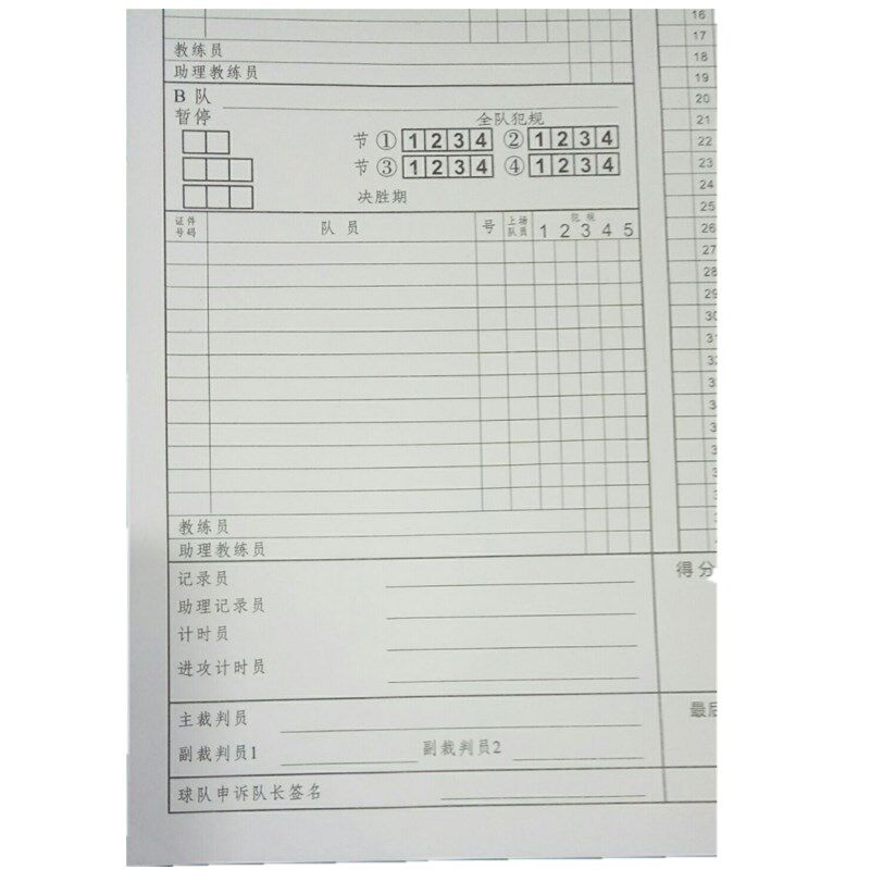 Особенности: Международный баскетбольный союзСтандартная таблица счетов, 15 страниц и 15 экземпляров, вы можете записать 15 игр;Углерод -бездействие,Один -тип четырехнированныйСущность