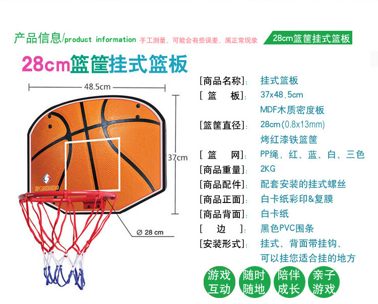 Баскетбольное кольцо:В том числе подборы (материал: доска плотности) корзина (материал: железо)