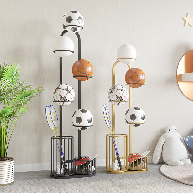 Стеллаж для хранения баскетбольных мячей дома, в помещении, стеллаж для хранения спортивных артефактов, рамка для хранения волейбольных мячей, размещение ракеток для бадминтона
