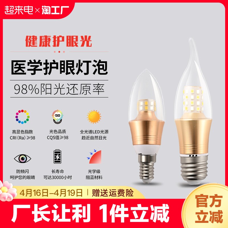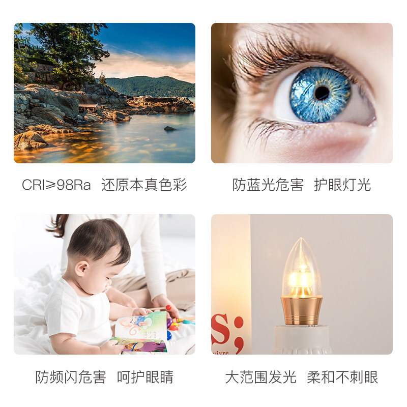 Светодиодная свеча, лампочка для гостиной, с винтовым цоколем, три цвета, защита глаз