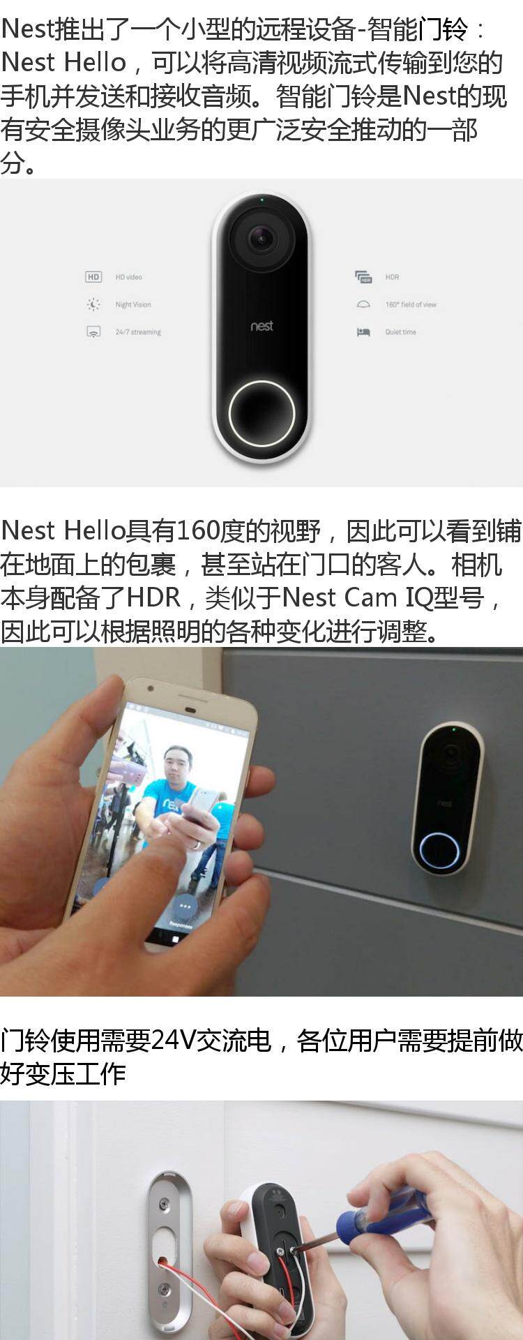 Nest Hello Doorbll Smart Remote HD Visability Anti -Gate Bell