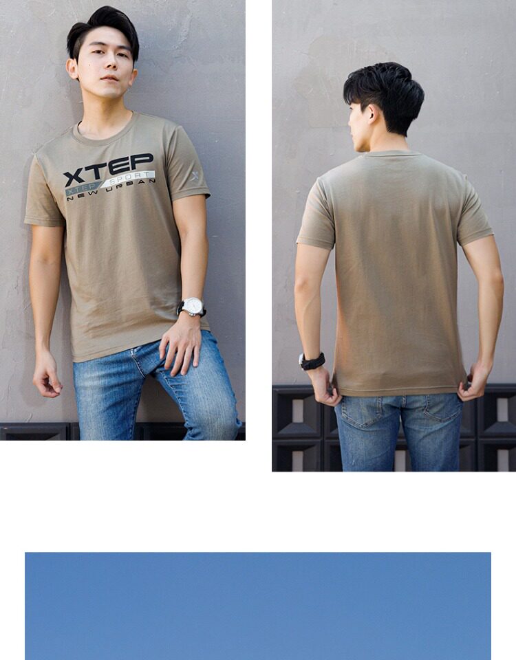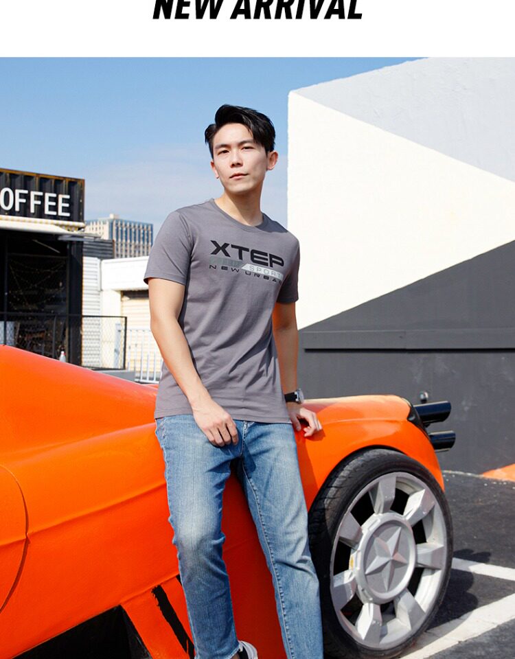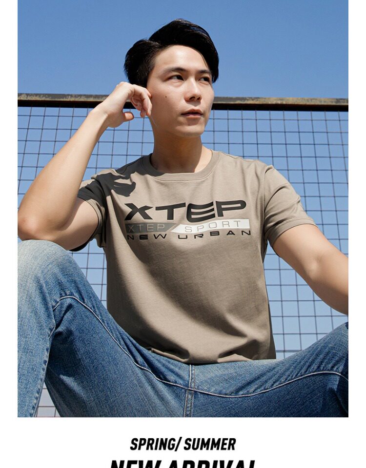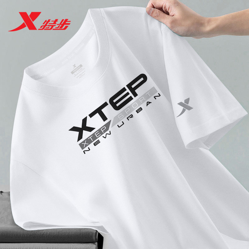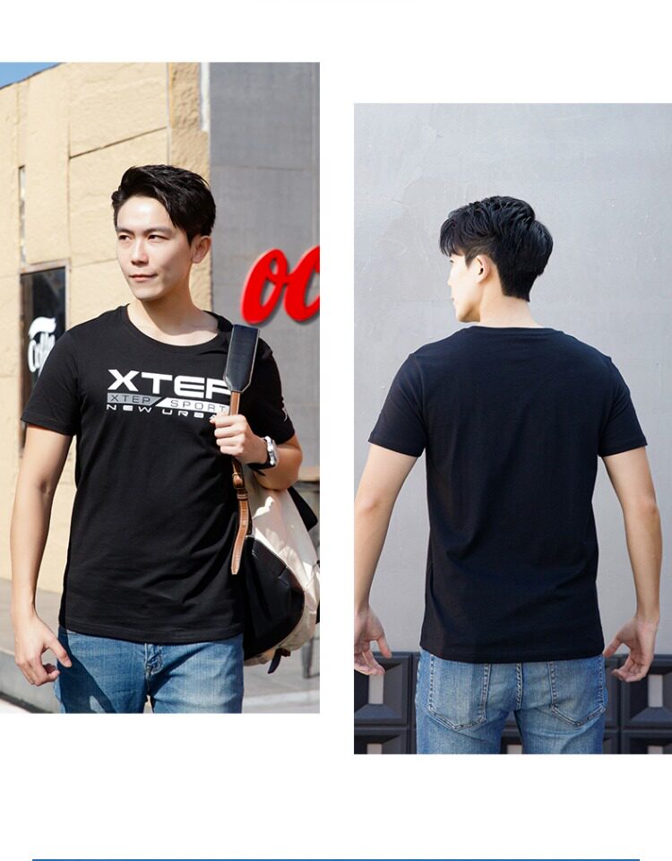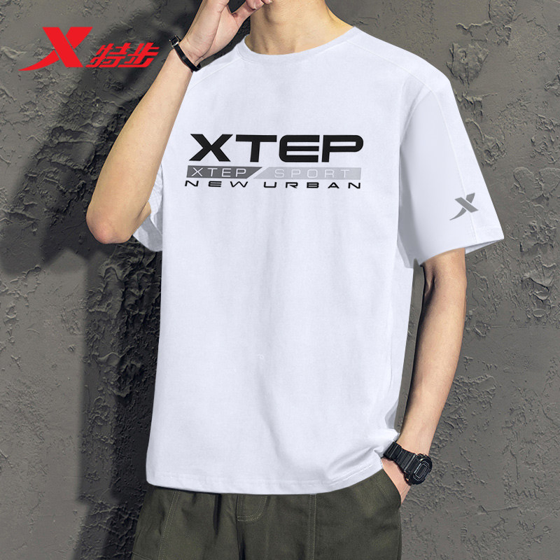 Xtep, мужская осенняя спортивная футболка с коротким рукавом