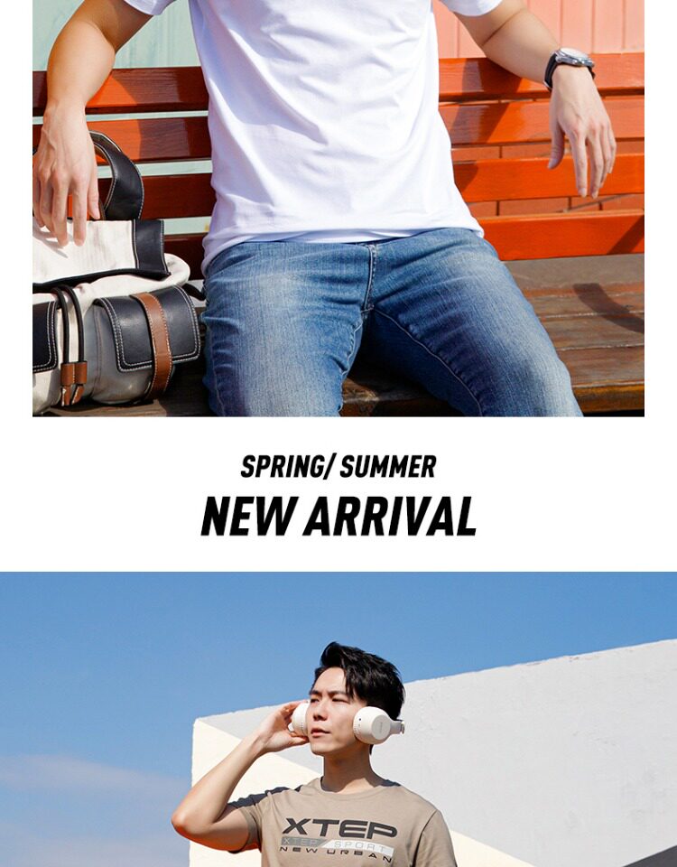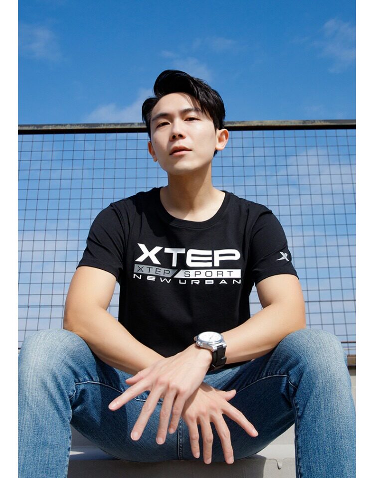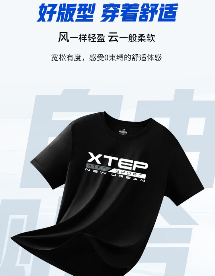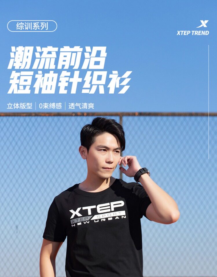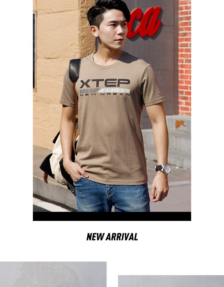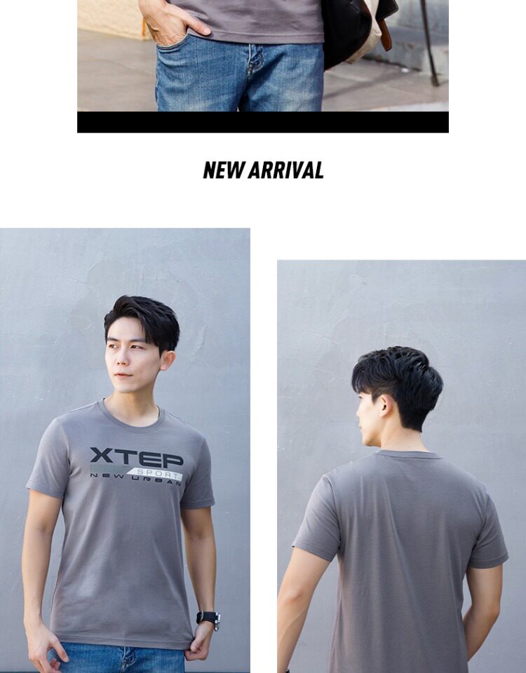 Xtep, мужская осенняя спортивная футболка с коротким рукавом