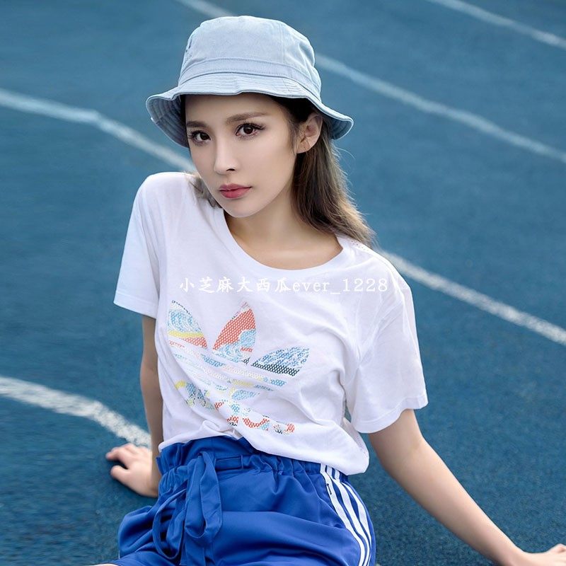 Adidas Sanya Counter подлинная летняя логотип Los Angeles Graffiti Logo Women's Sports Sport -Short -Sleeed T -Fish BJ8283