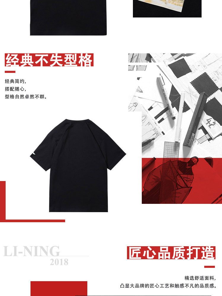 Li Ning, спортивная футболка подходит для мужчин и женщин для отдыха, короткий рукав