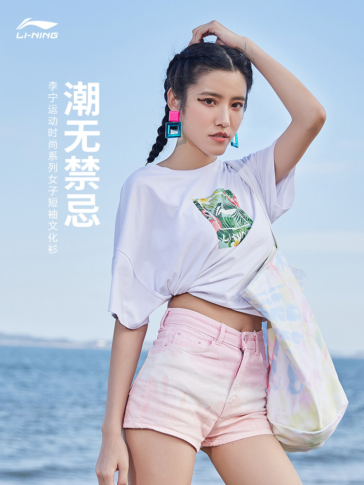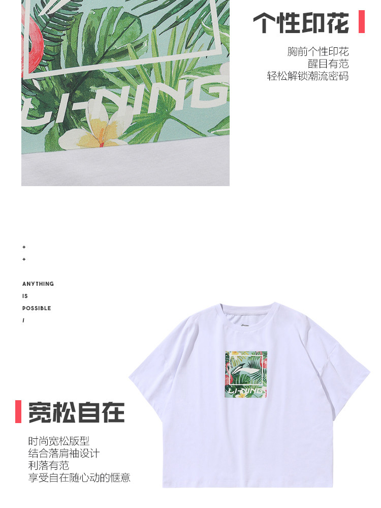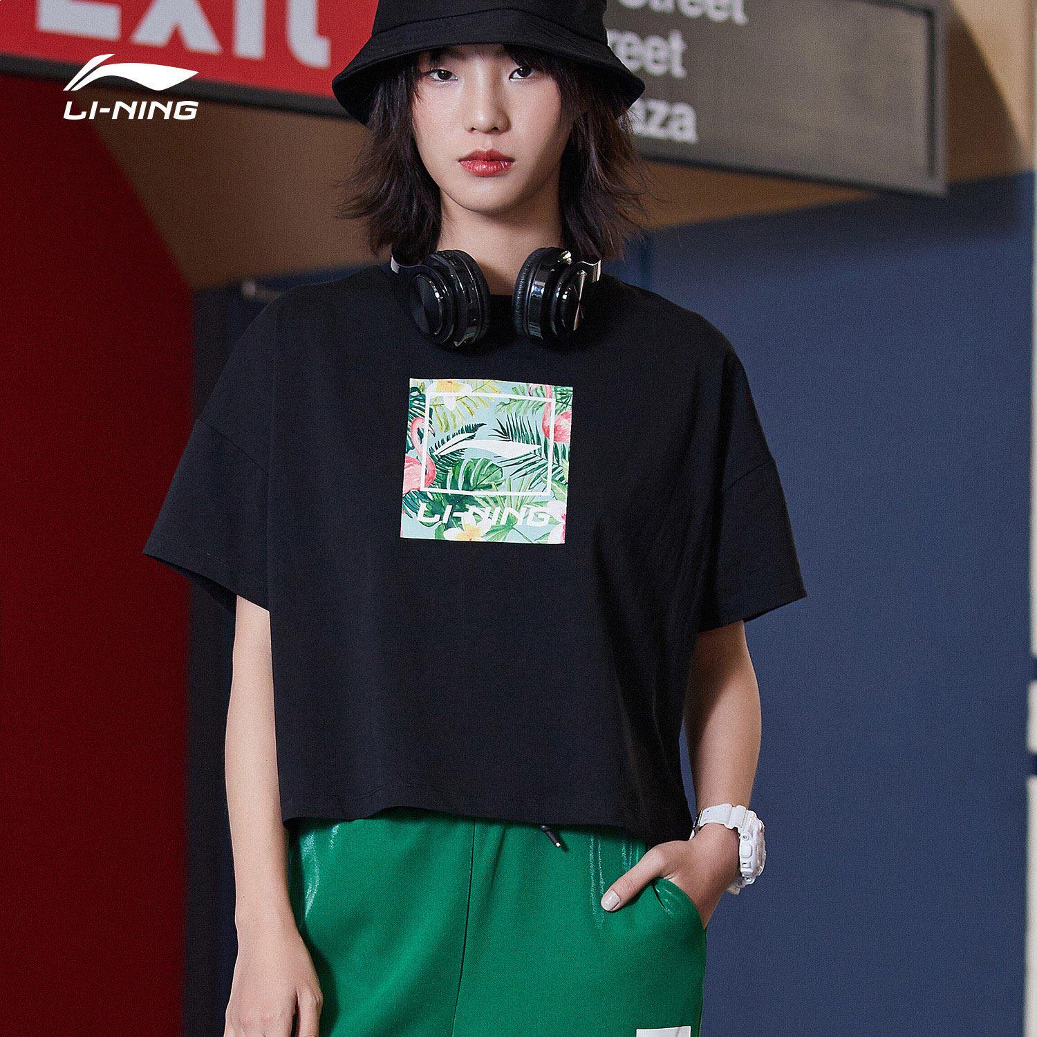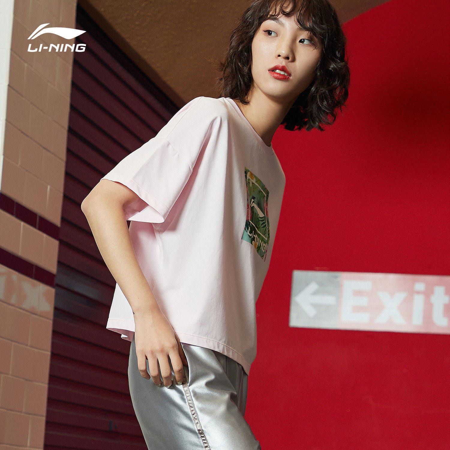 Li Ning, спортивная модная летняя белая трикотажная футболка с круглым воротником для отдыха, короткий рукав