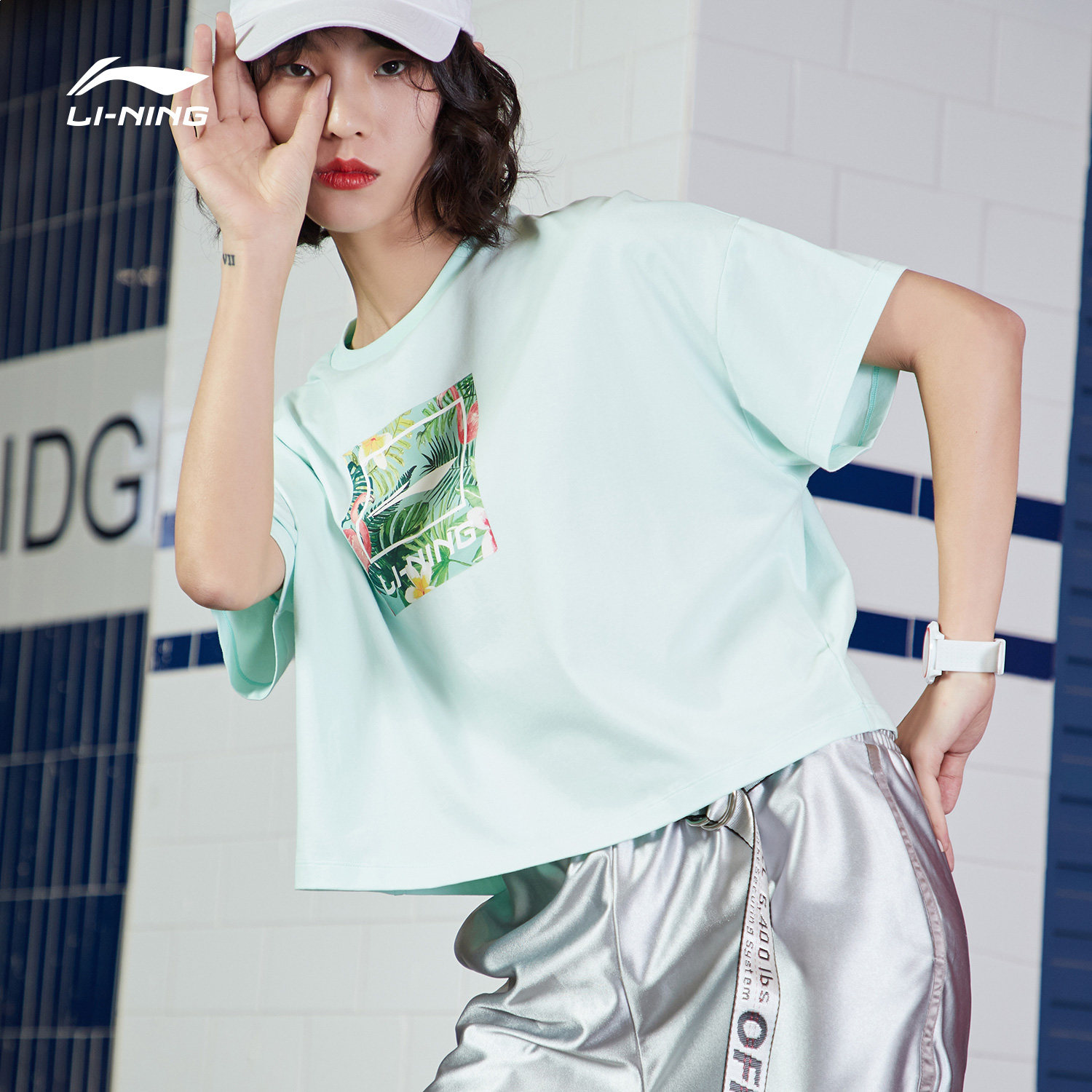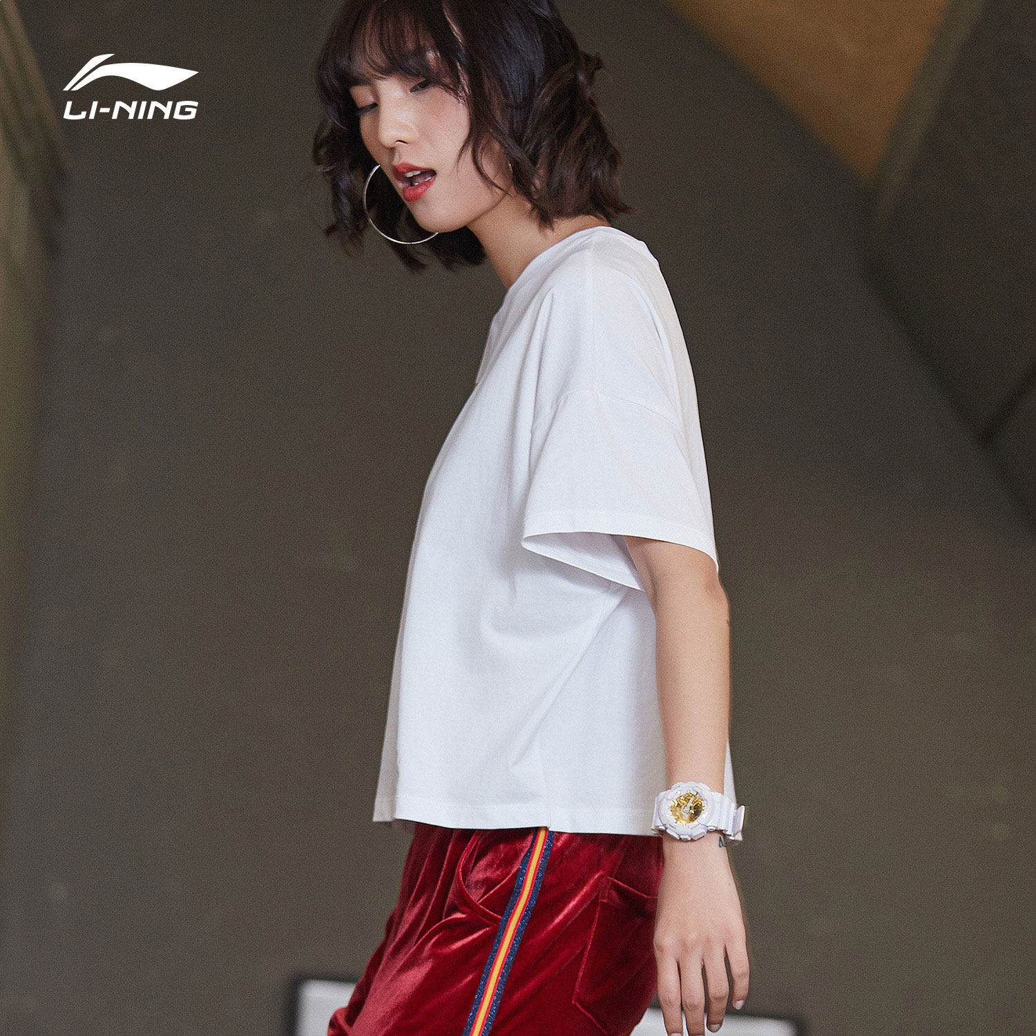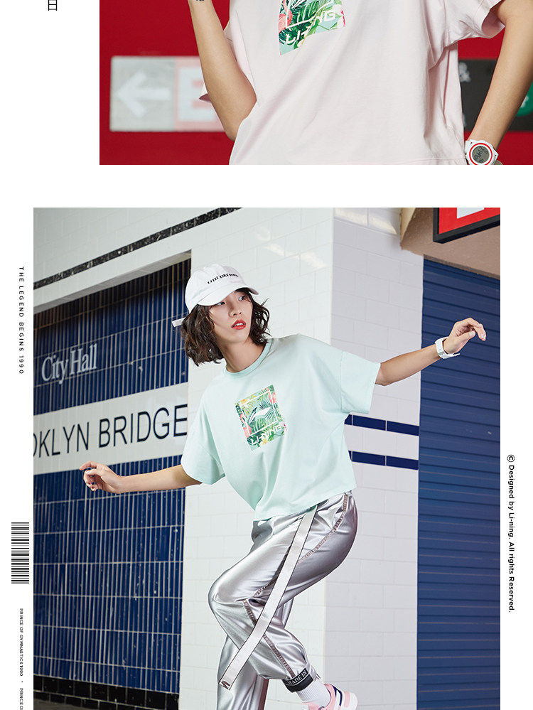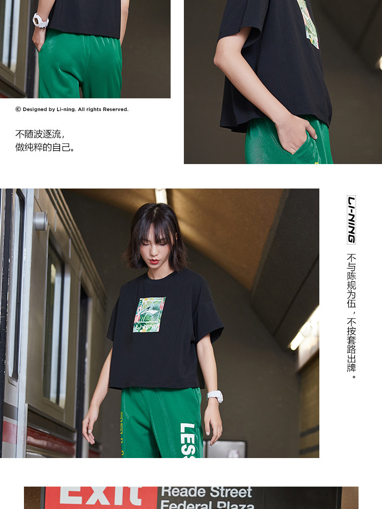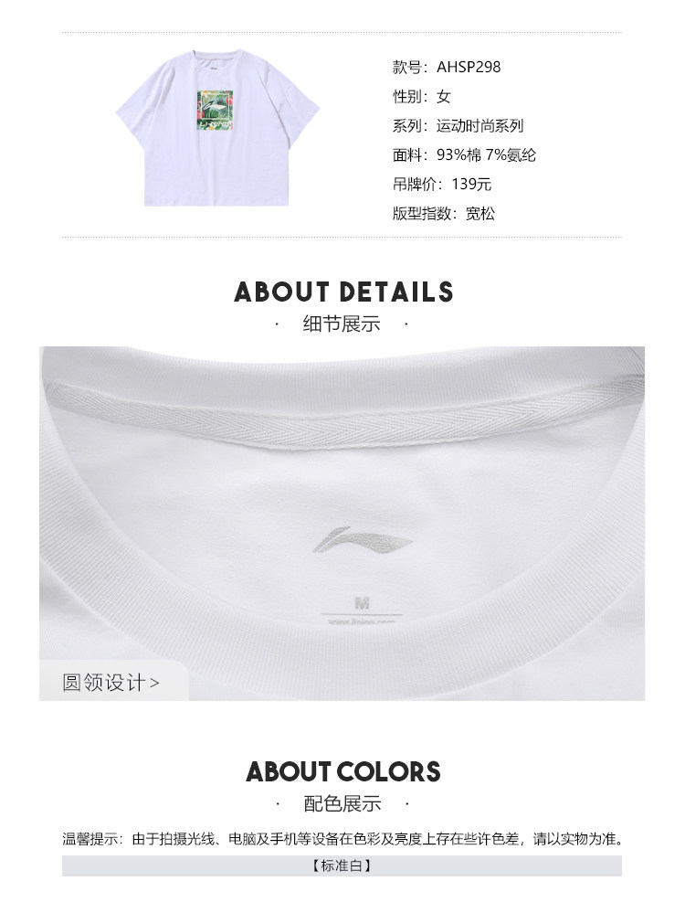 Li Ning, спортивная модная летняя белая трикотажная футболка с круглым воротником для отдыха, короткий рукав