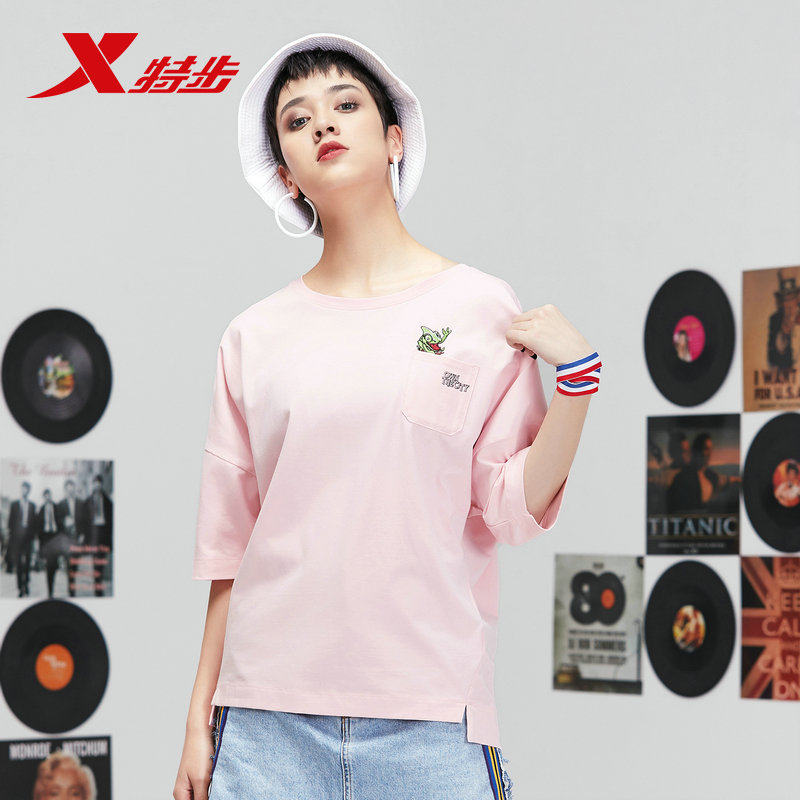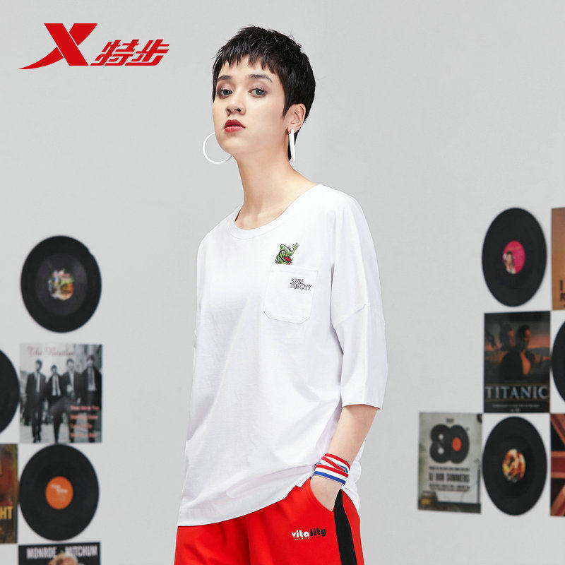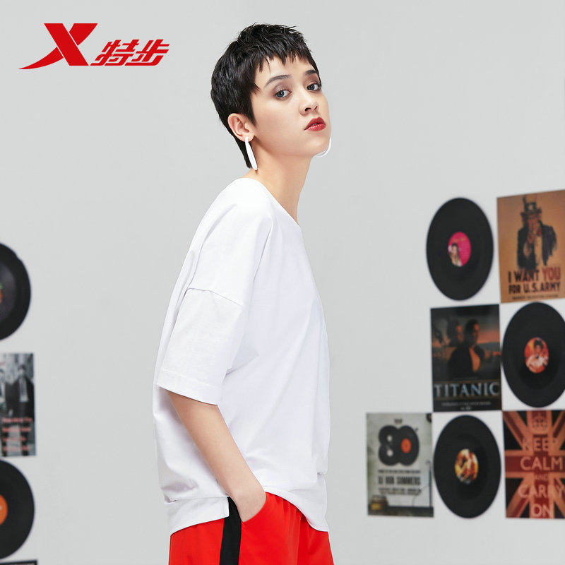 Xtep, летняя комфортная дышащая футболка с коротким рукавом для отдыха с круглым воротником, свободный крой