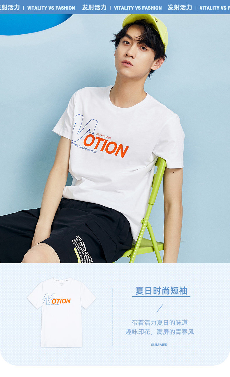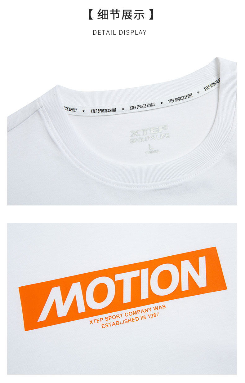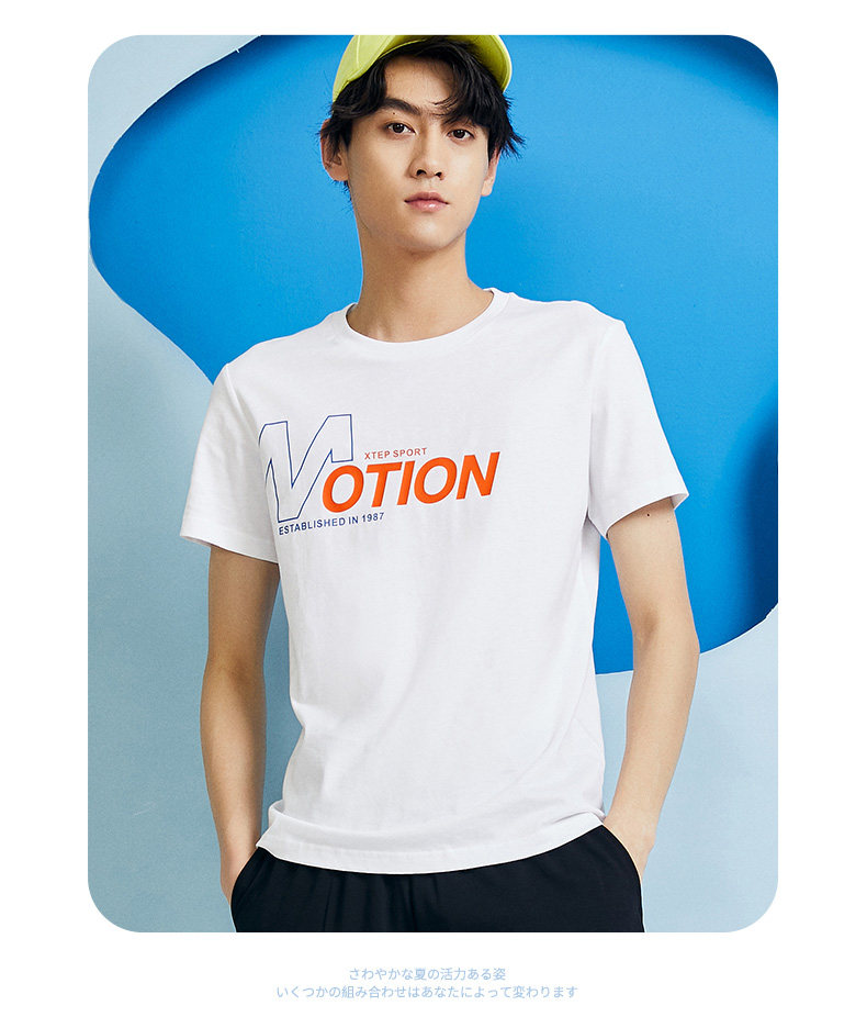 Xtep, мужская хлопковая летняя трендовая спортивная белая футболка с коротким рукавом