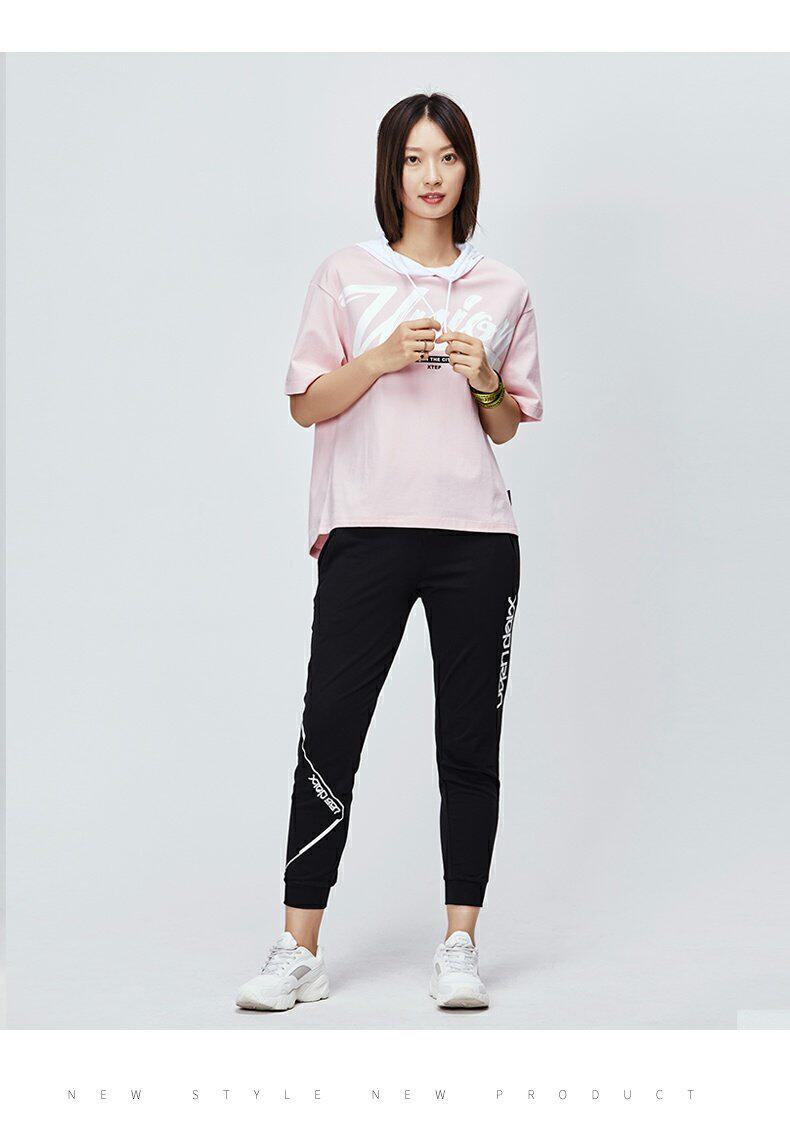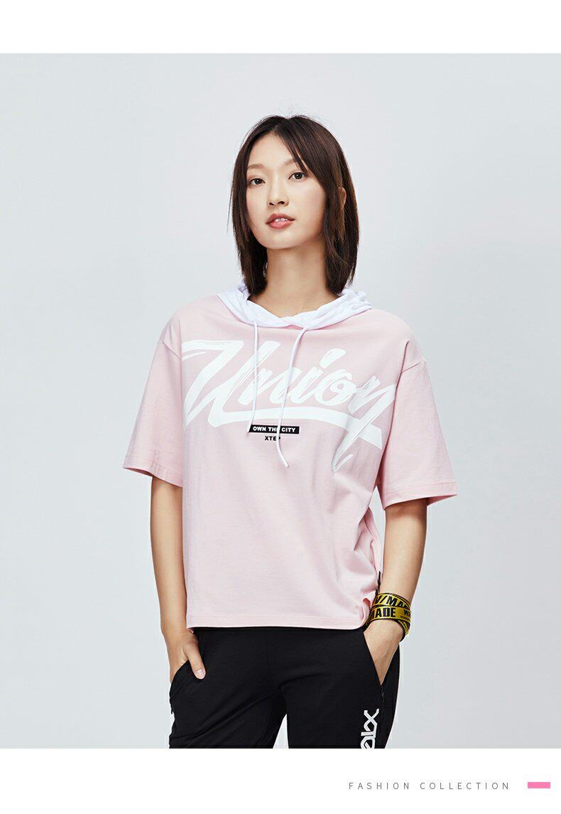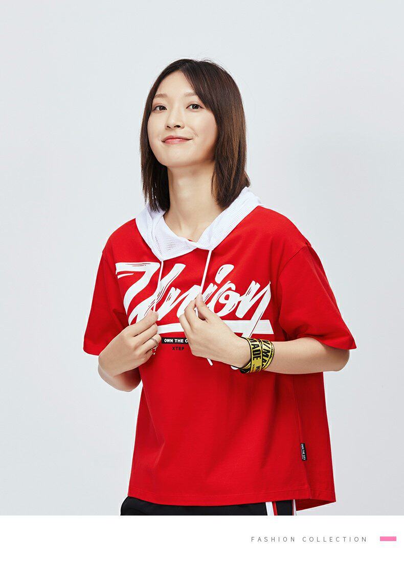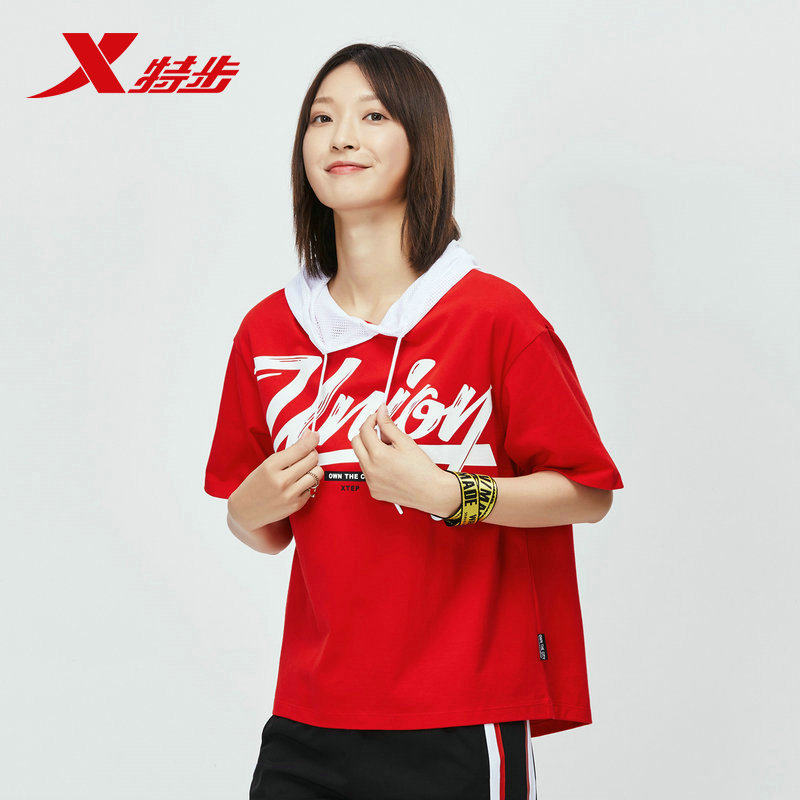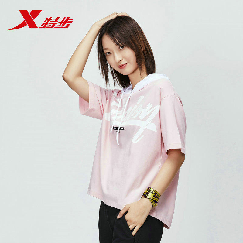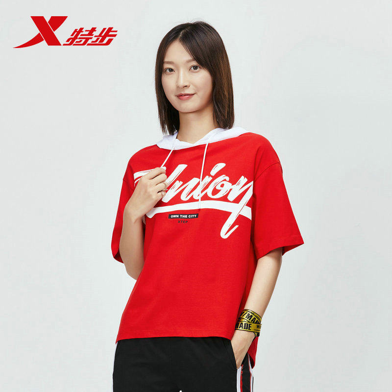 Xtep, летняя трендовая футболка с коротким рукавом с капюшоном для отдыха, 2019, в корейском стиле