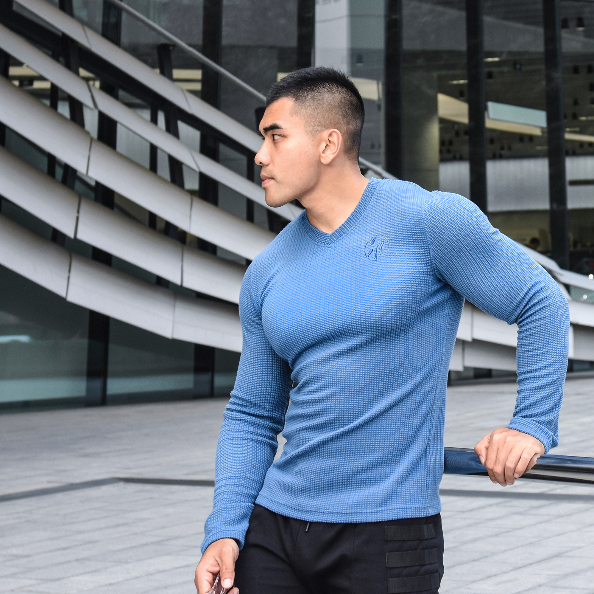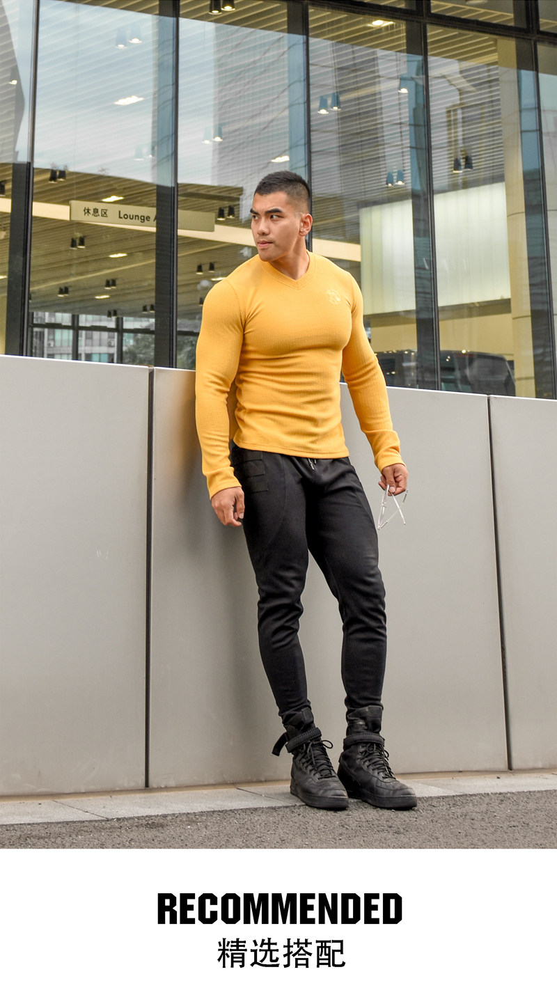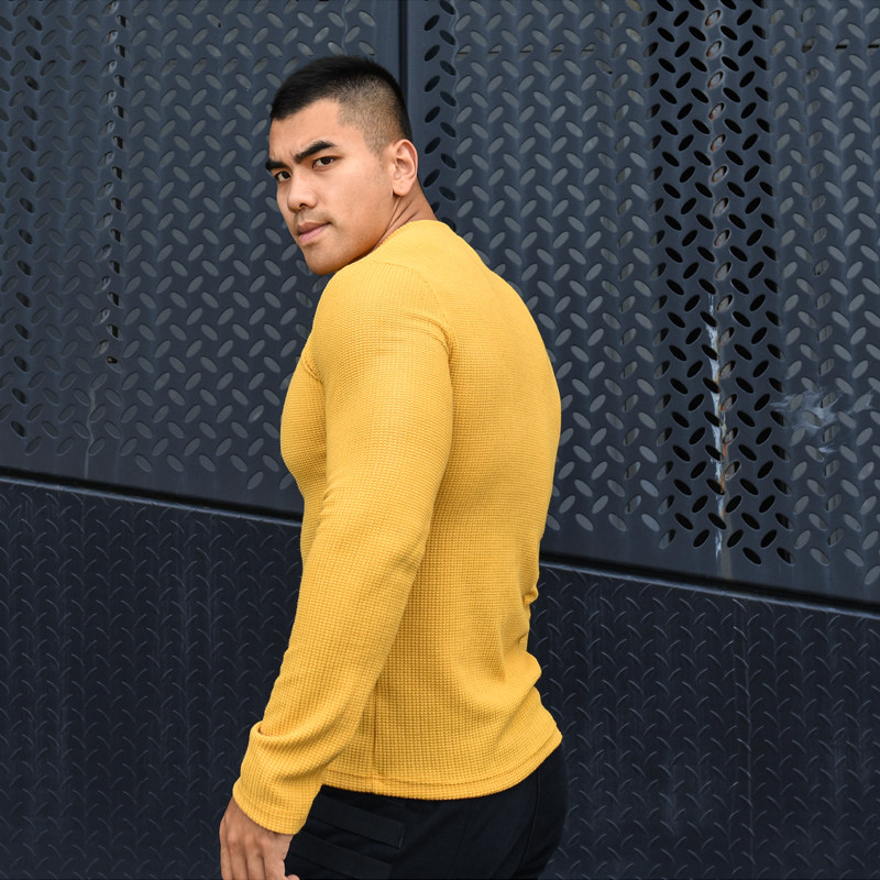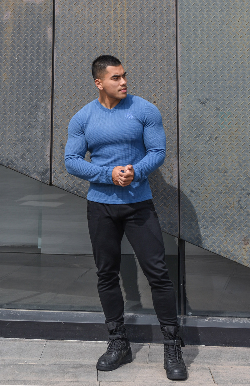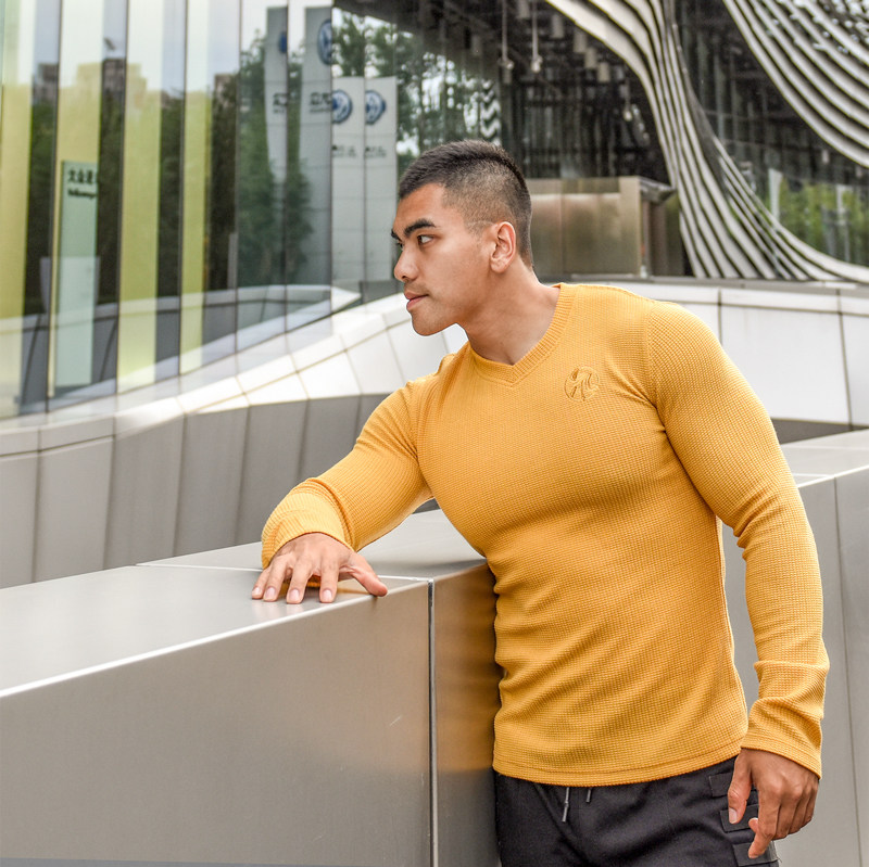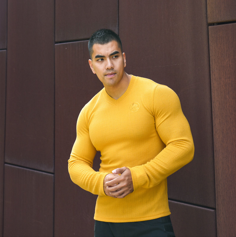 LIANG PIN Tritium мужской двухцветный топ вафельного цвета с длинными рукавами и V-образным вырезом 01925