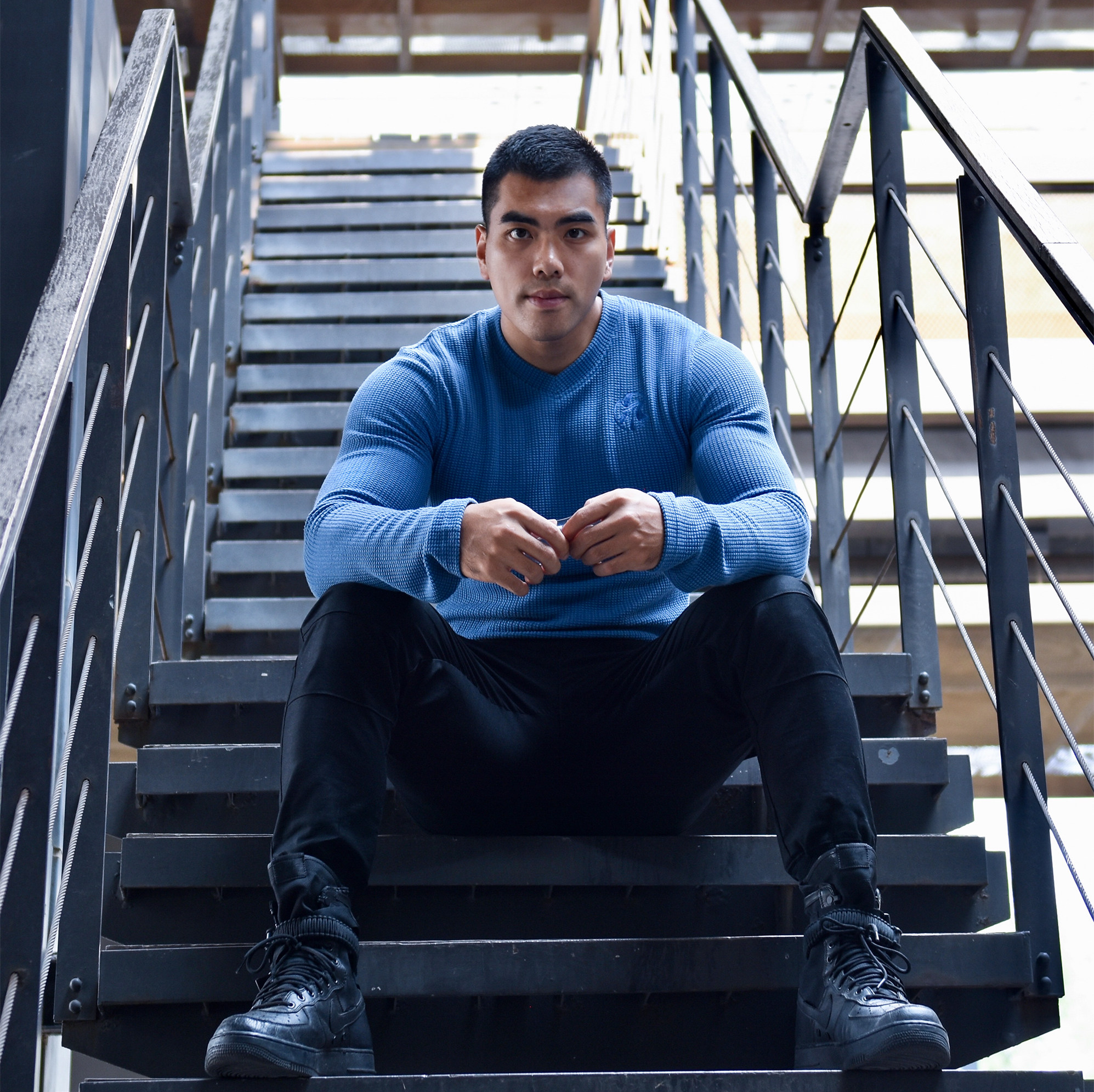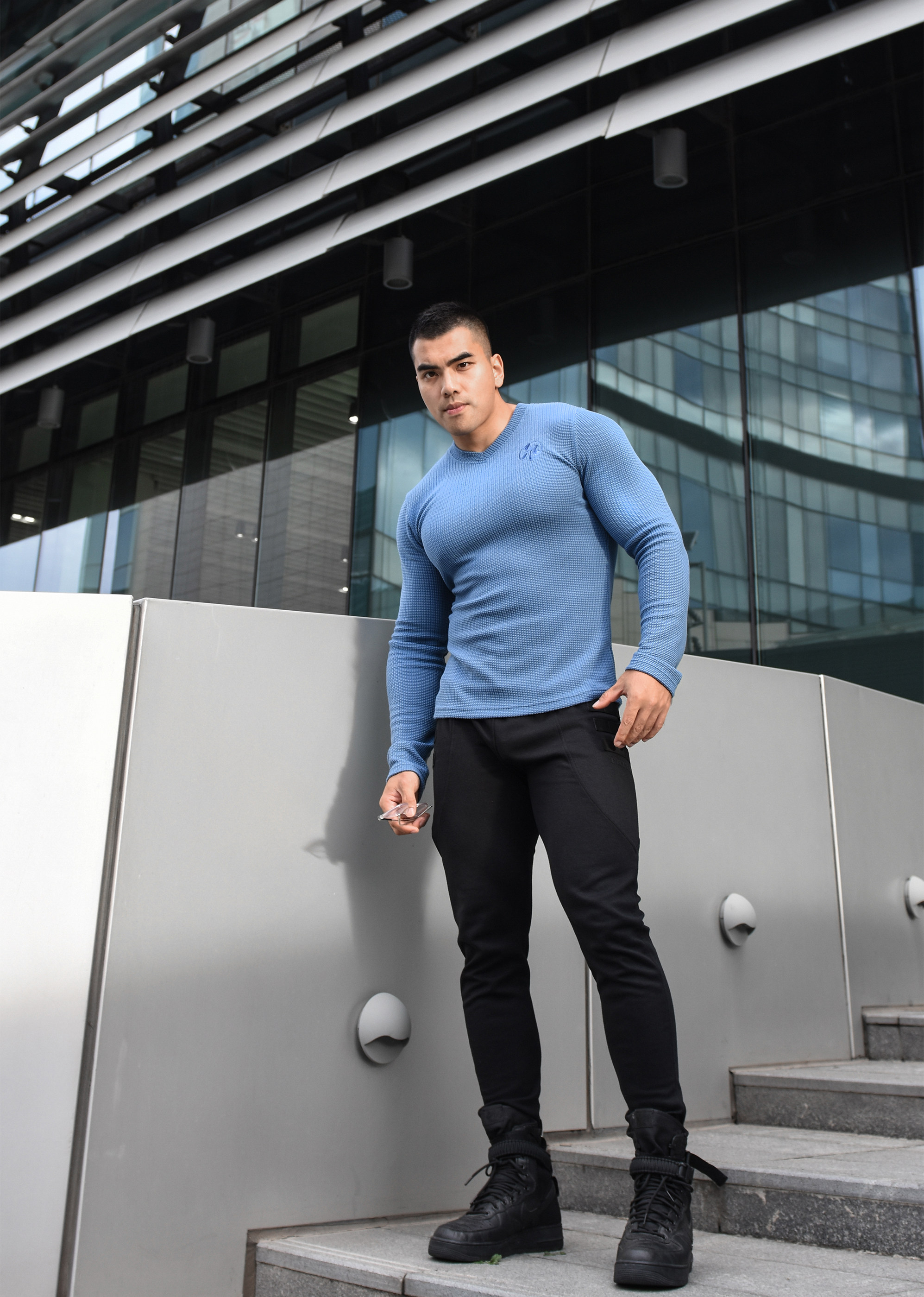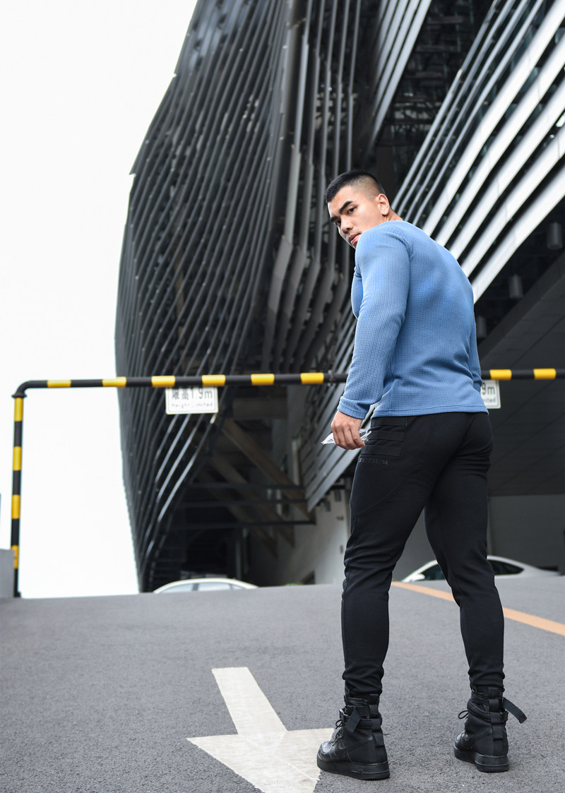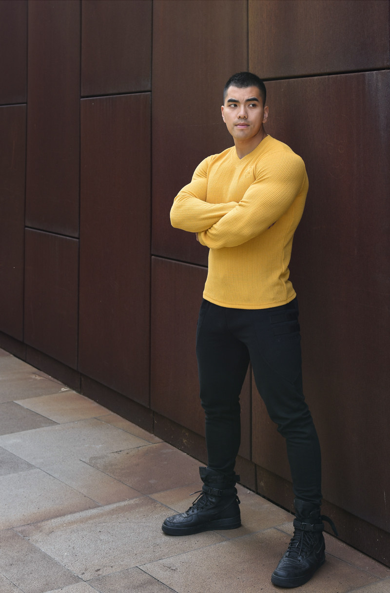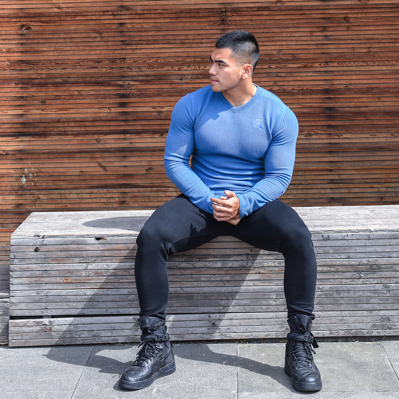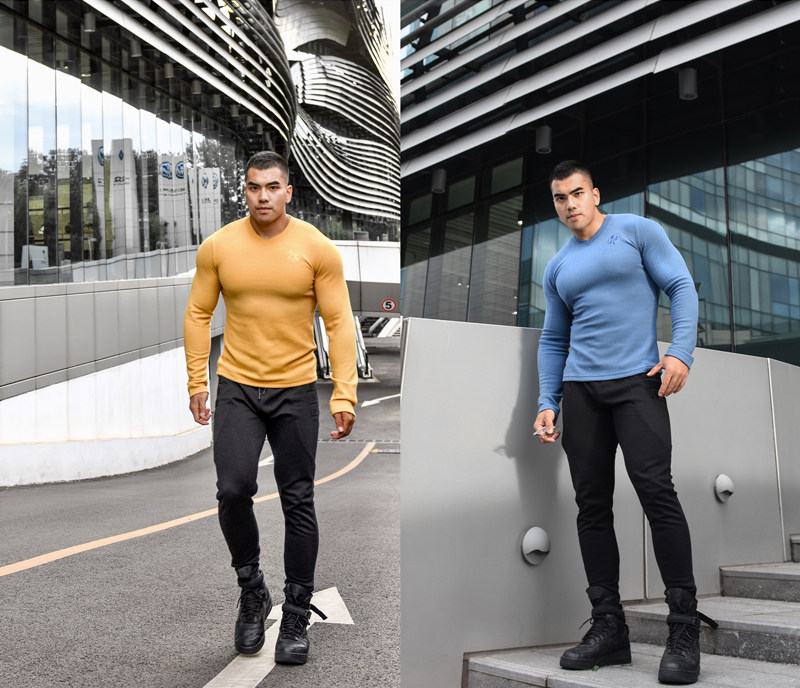 LIANG PIN Tritium мужской двухцветный топ вафельного цвета с длинными рукавами и V-образным вырезом 01925