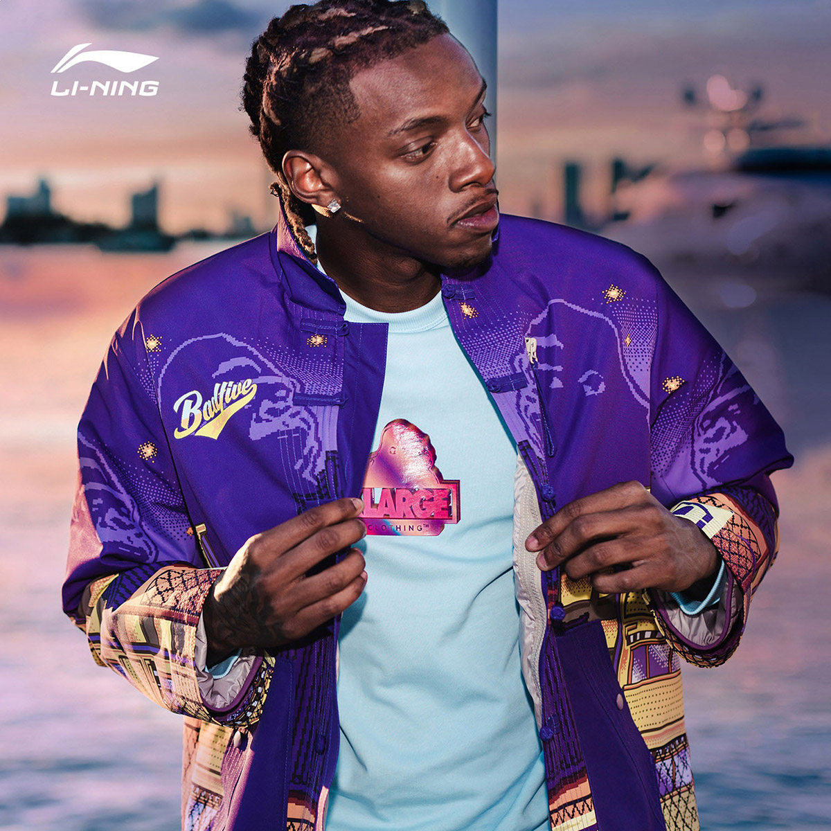 Li Ning Averse Badfivexxlarge Совместный флагманский официальный сайт Long -sleeded Свитер мужской случайный отпечаток