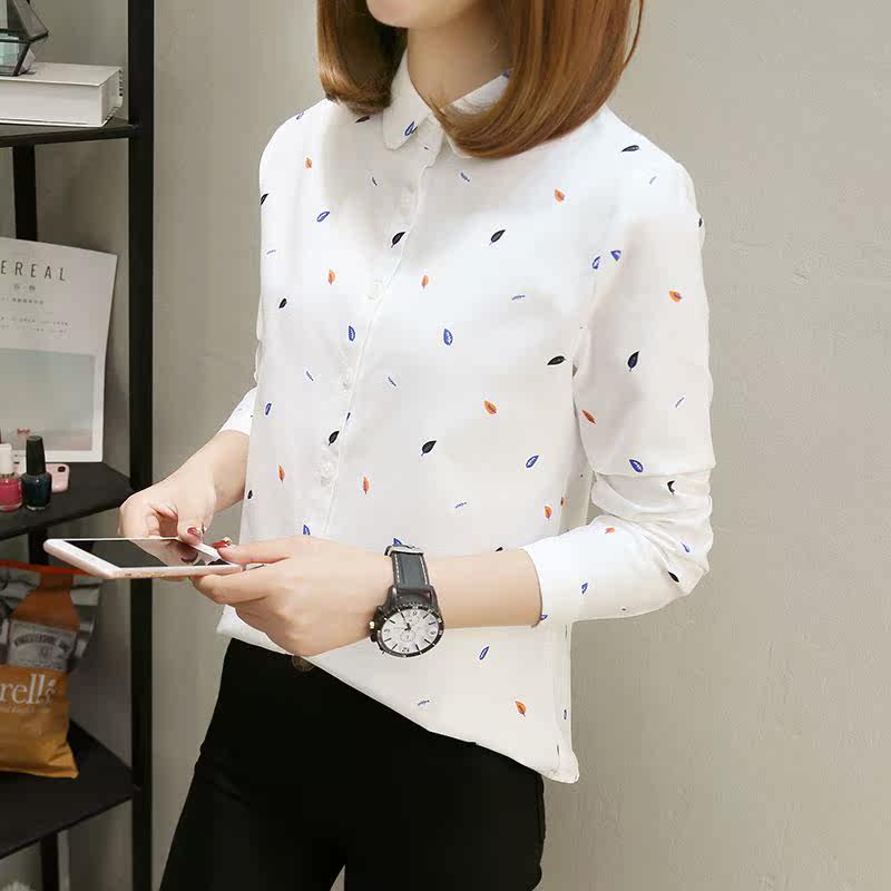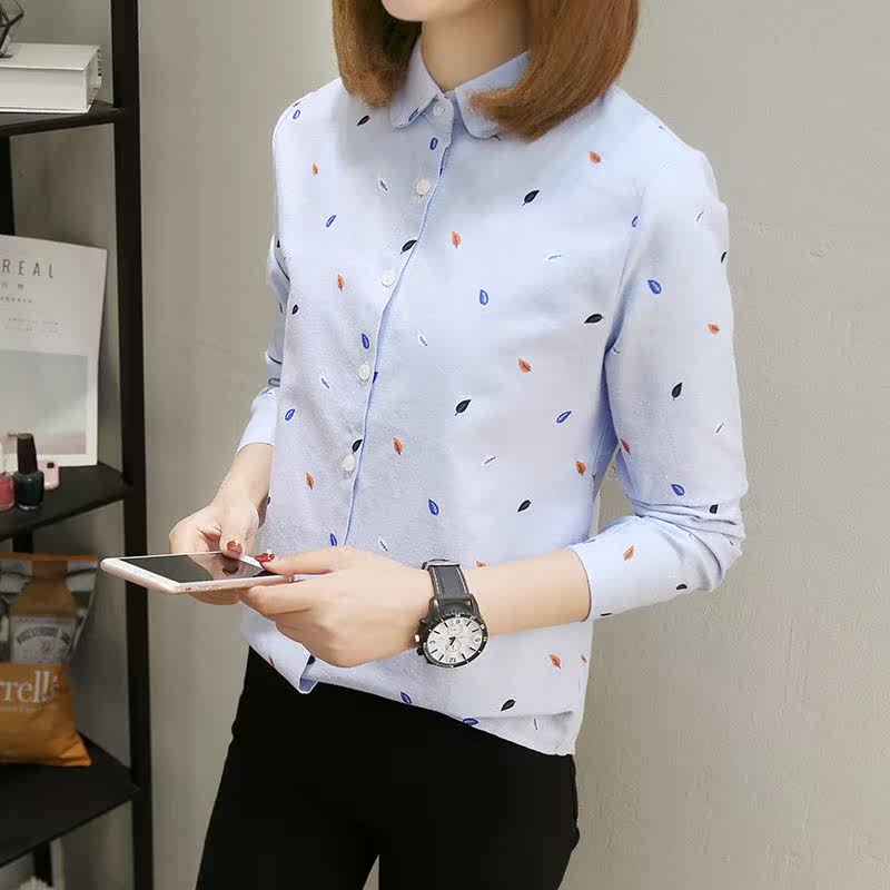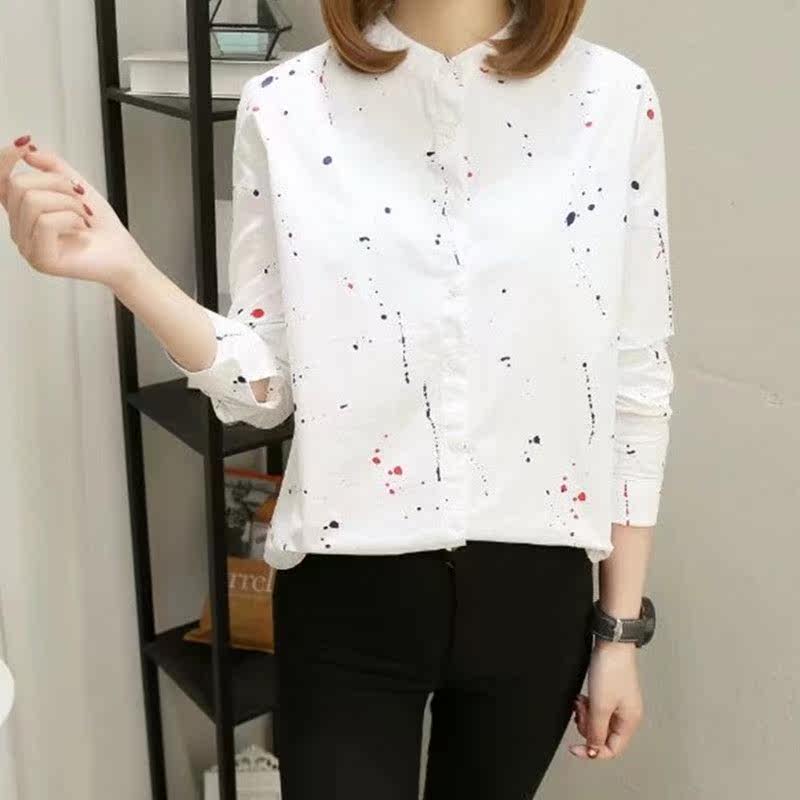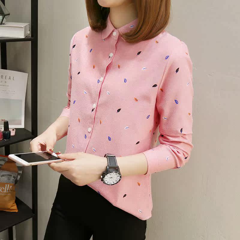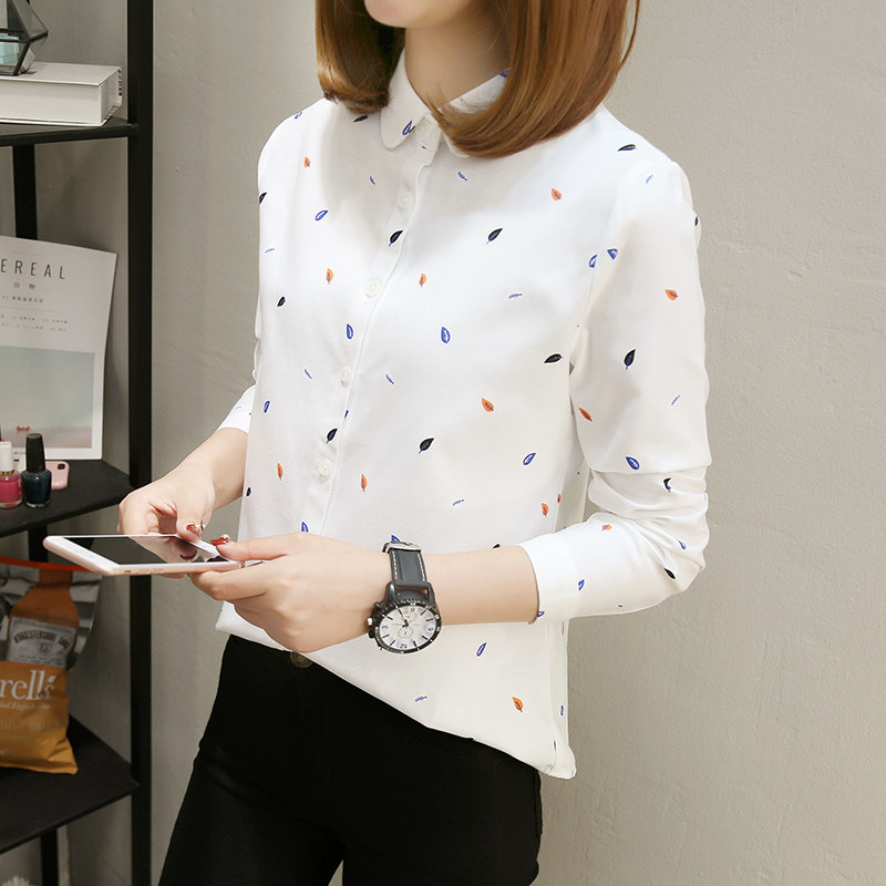 С длинным рукавом для печати женщин топ -хлопковая рубашка весна новая