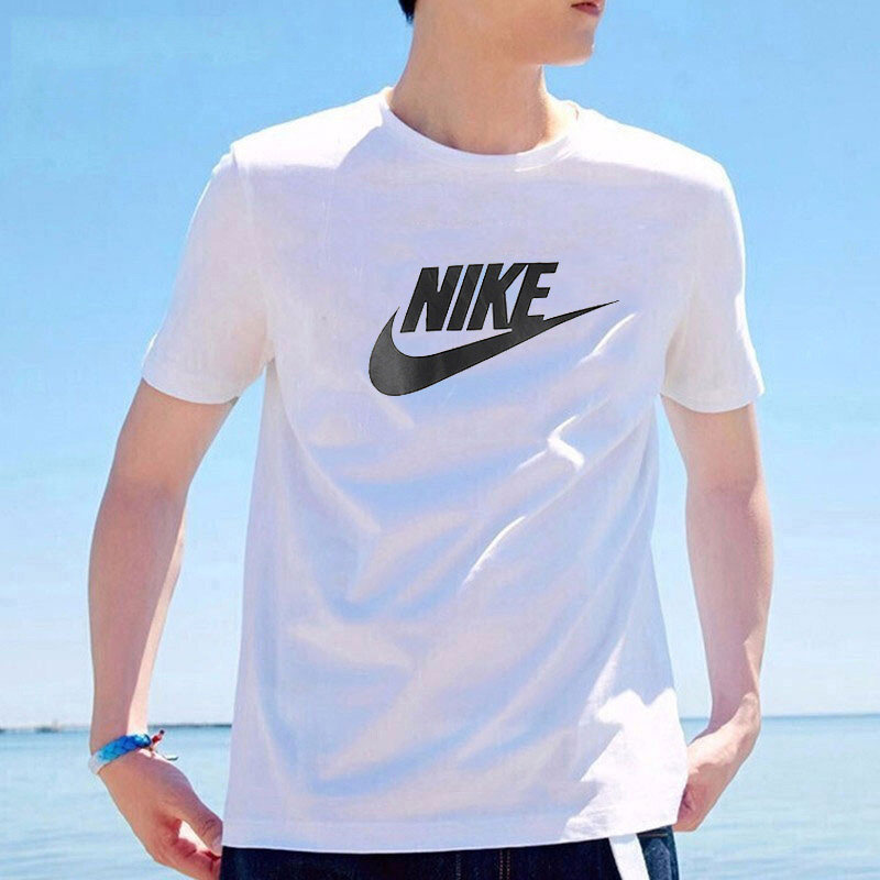 Nike, летняя белая спортивная футболка для отдыха с круглым воротником, короткий рукав, с рукавом