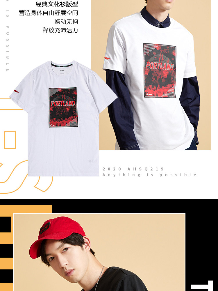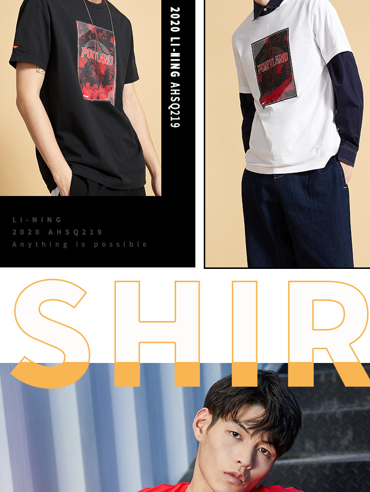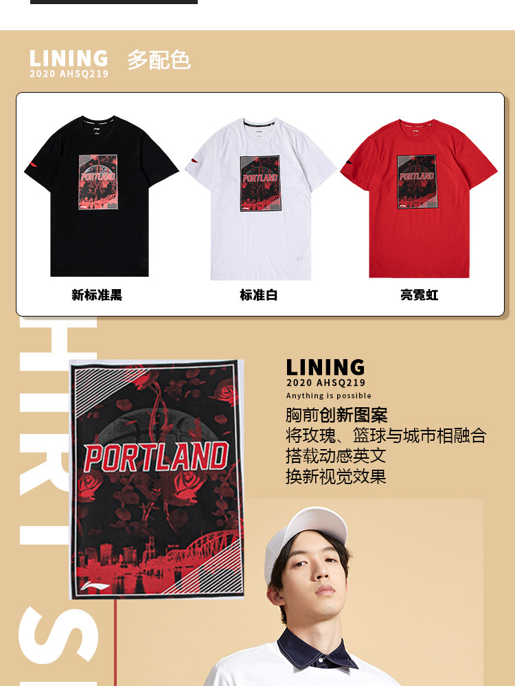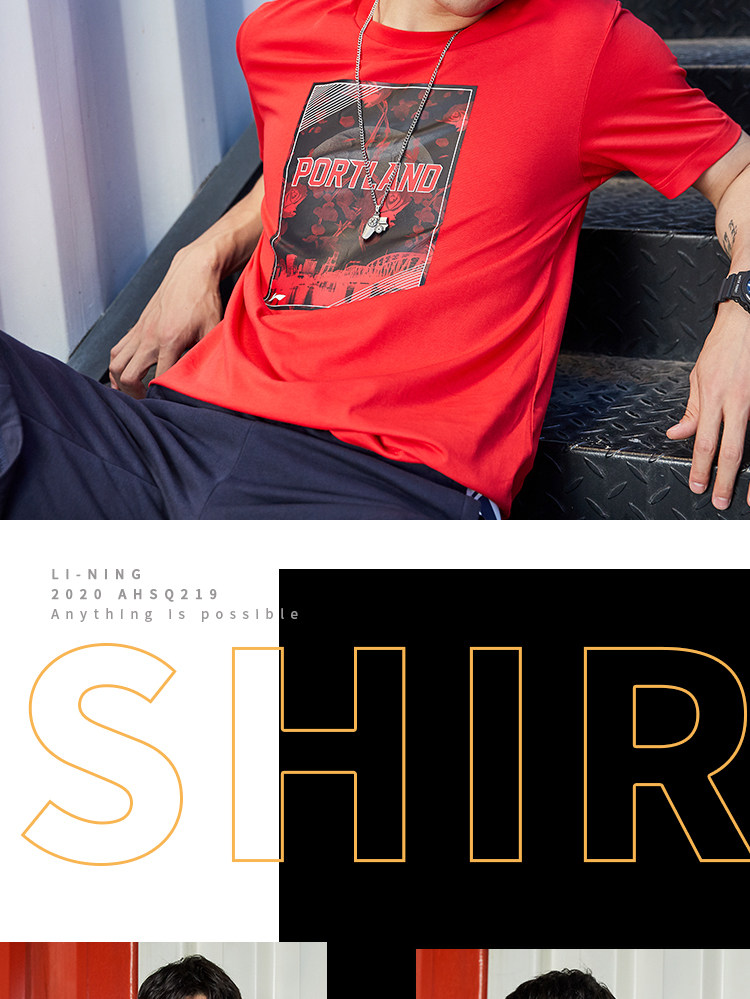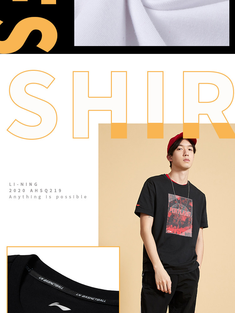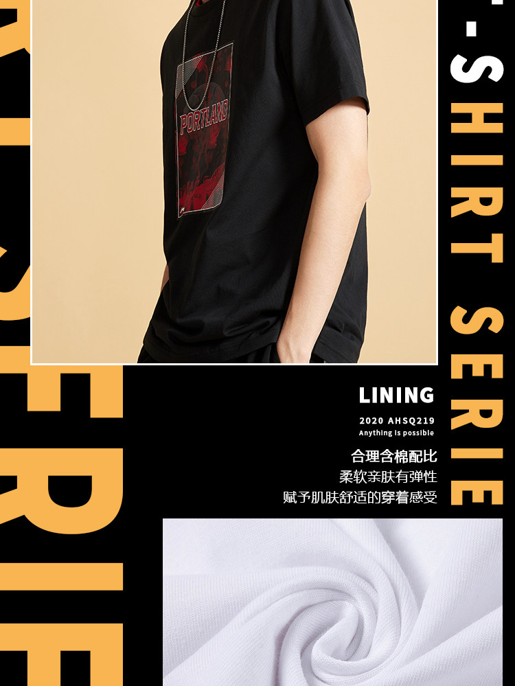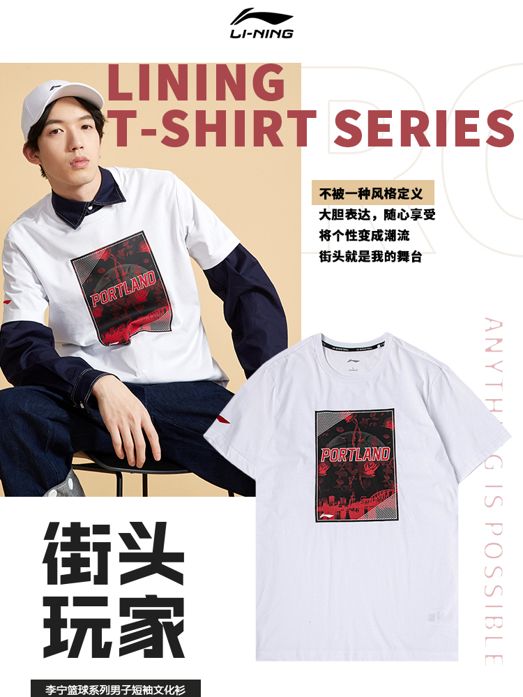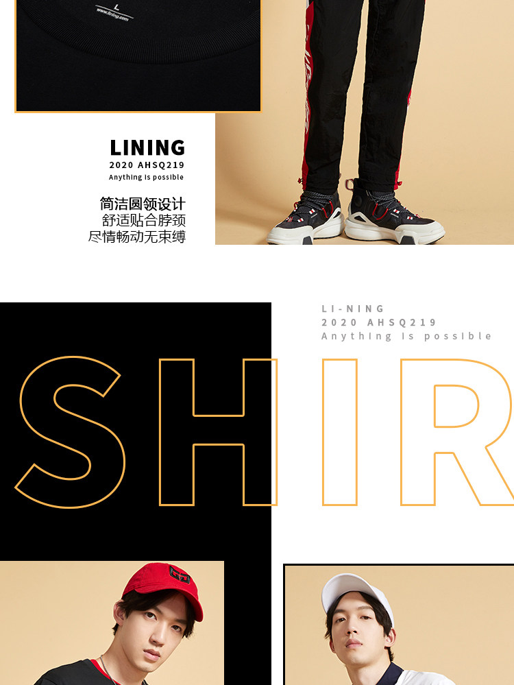 Li Ning, баскетбольная футболка с коротким рукавом, летний спортивный костюм с круглым воротником