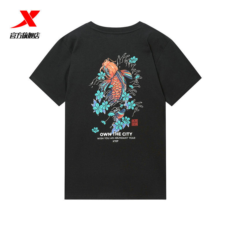 Xtep, летняя трендовая спортивная футболка, короткий рукав, сезон 2021, китайский стиль