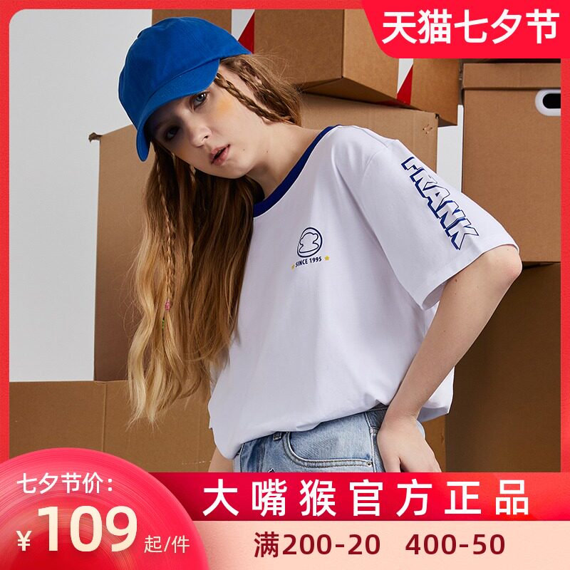 Paul Frank/大嘴猴 Летняя футболка с коротким рукавом с круглым воротником для влюбленных, сезон 2021, в корейском стиле