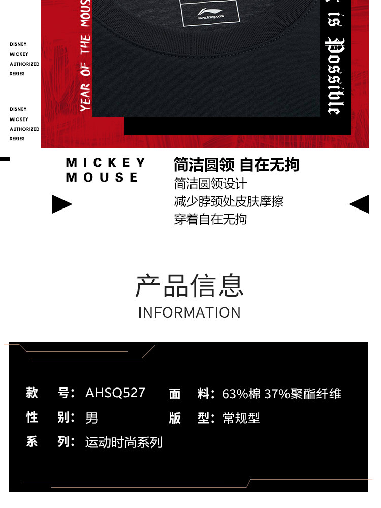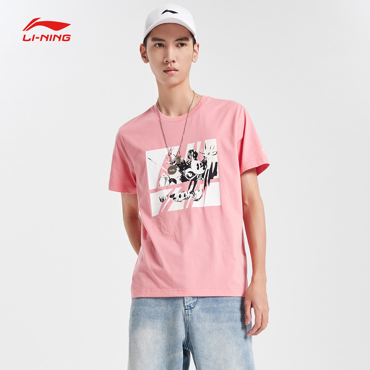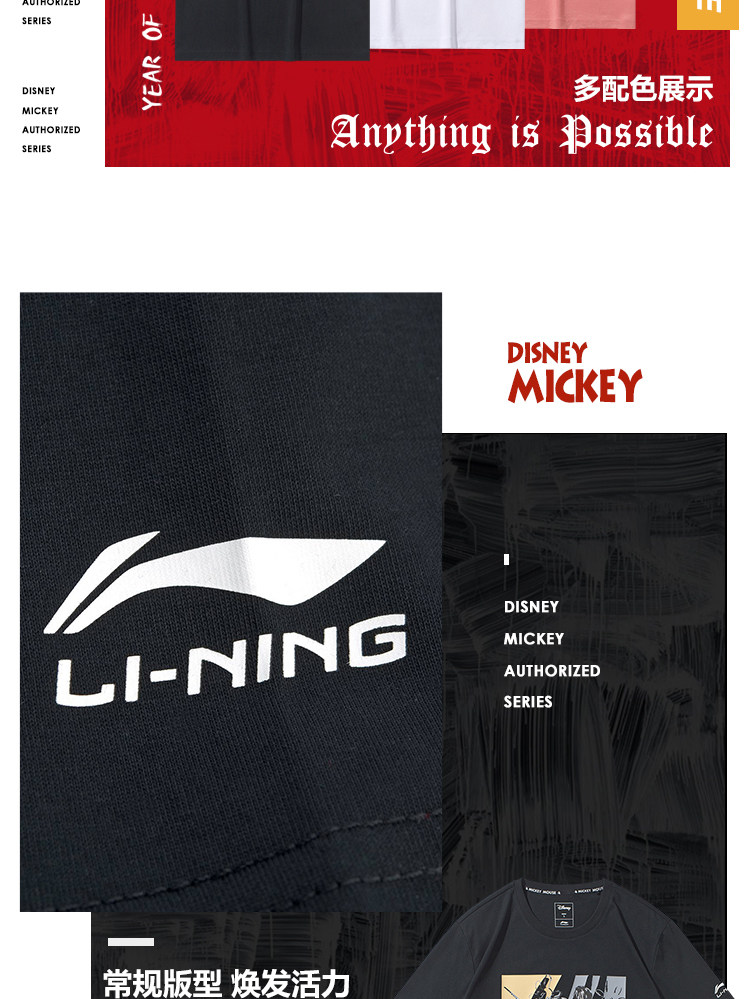 Li Ning, Дисней, футболка с коротким рукавом, трикотажный спортивный костюм для отдыха с круглым воротником