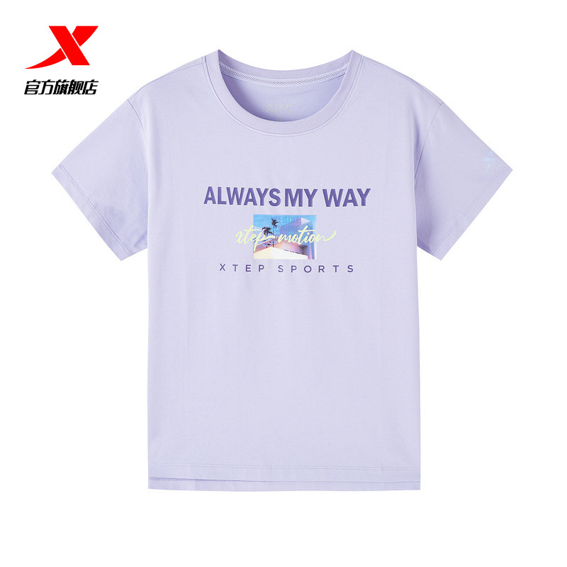 Xtep, летняя трендовая спортивная футболка с круглым воротником для отдыха, короткий рукав, принт